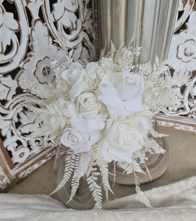 Bridal bouquet: real touch and velvet white roses