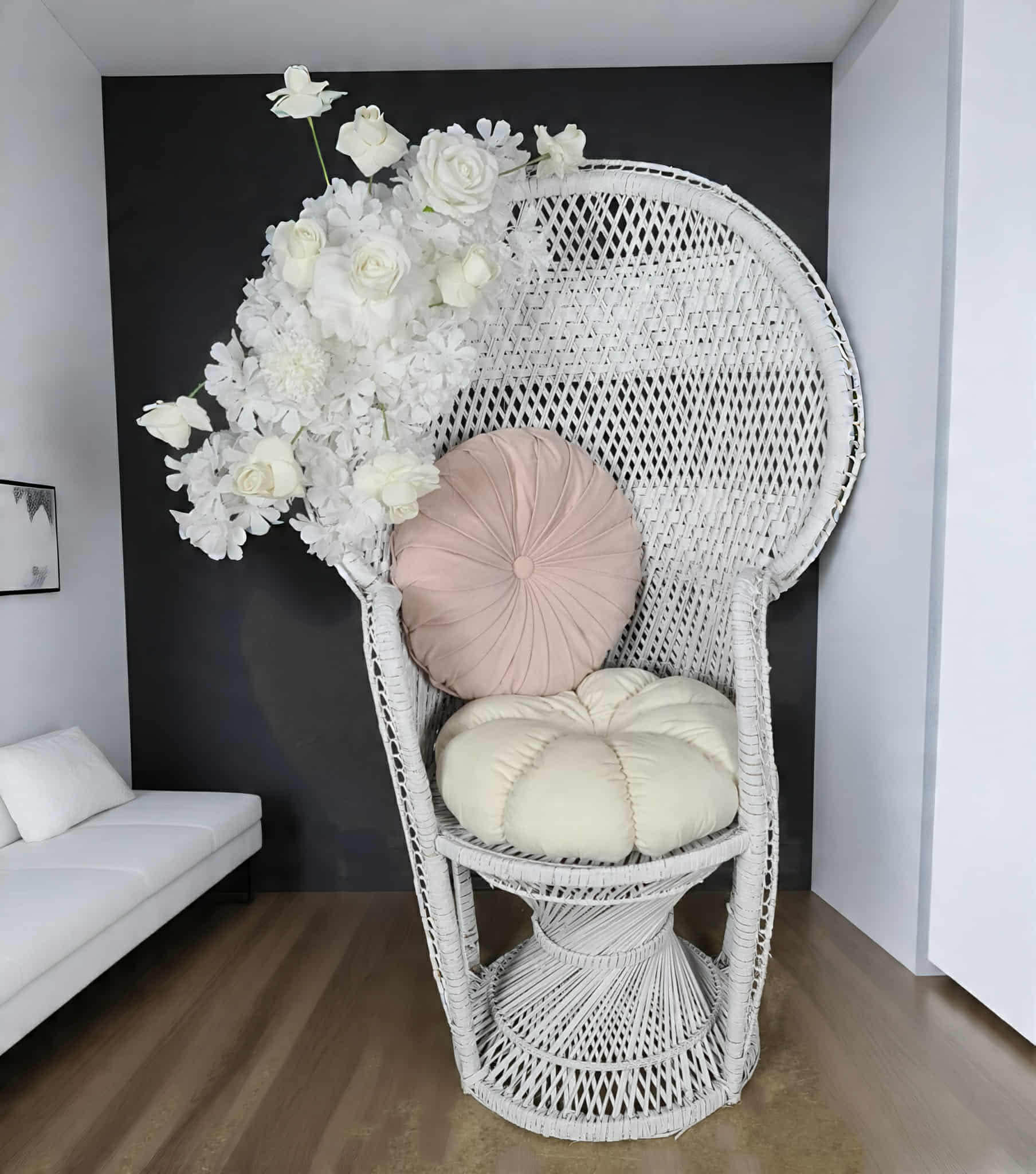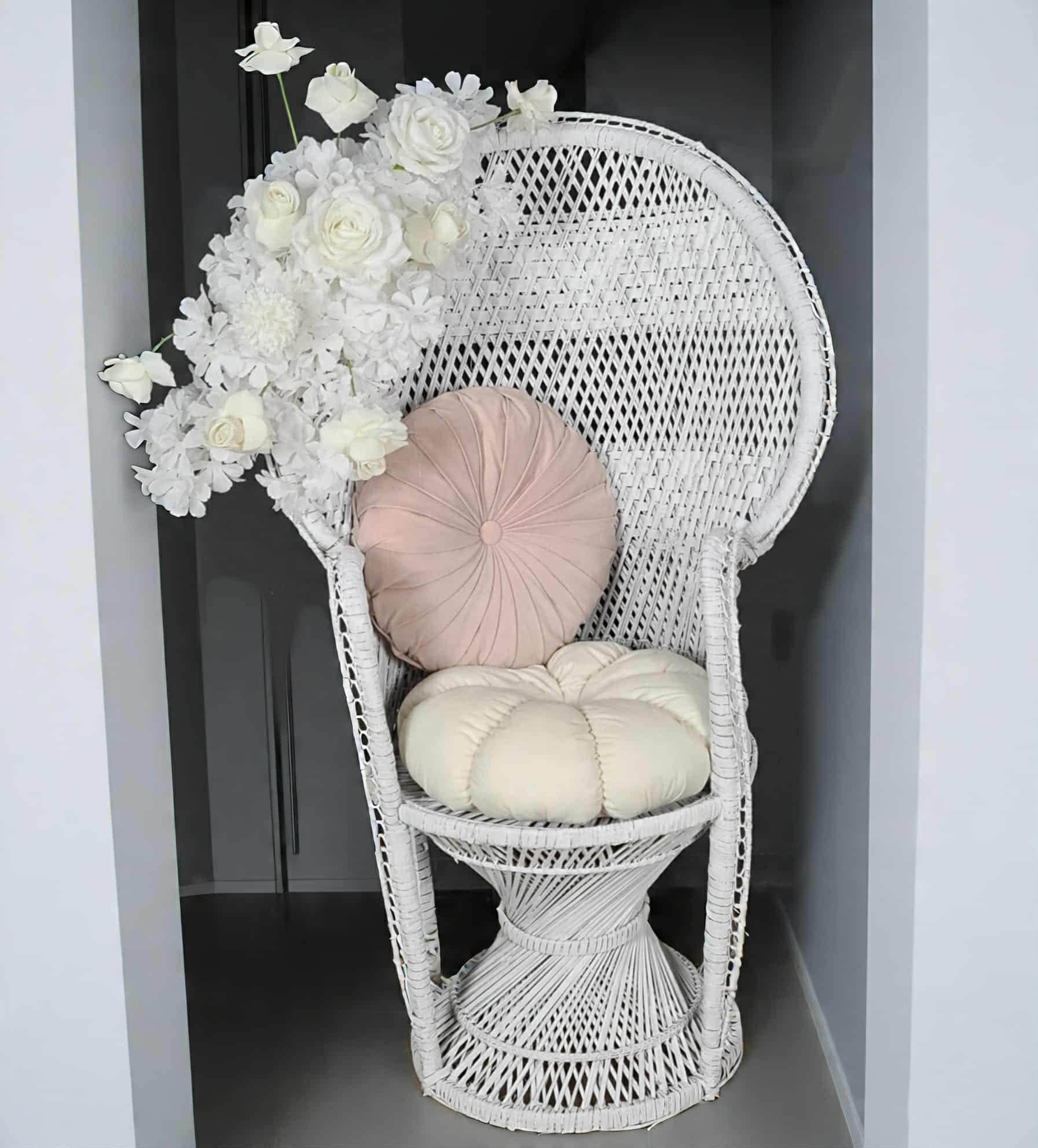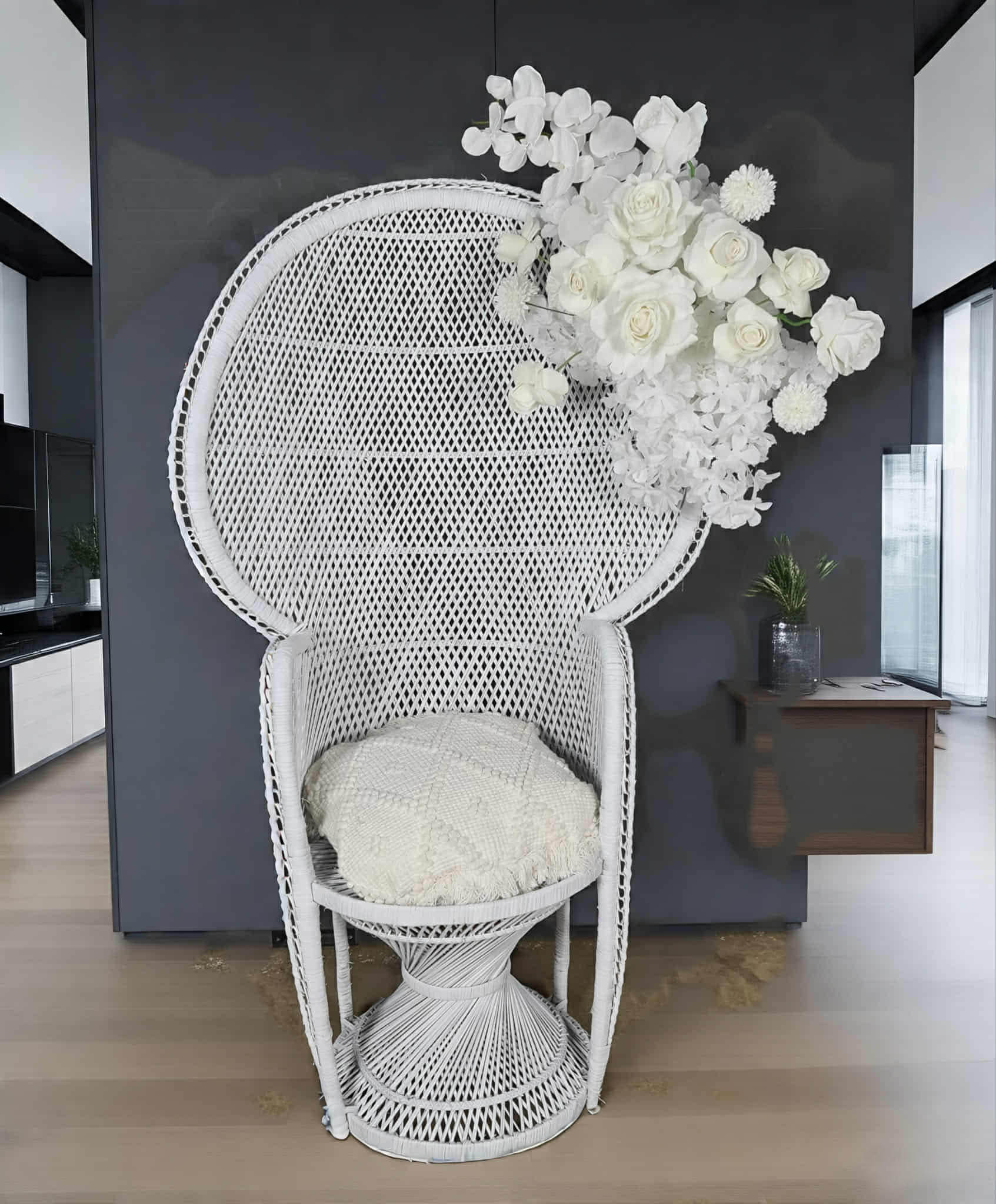 - White peacock chair with cushions MEDIUM ABH501 $40
