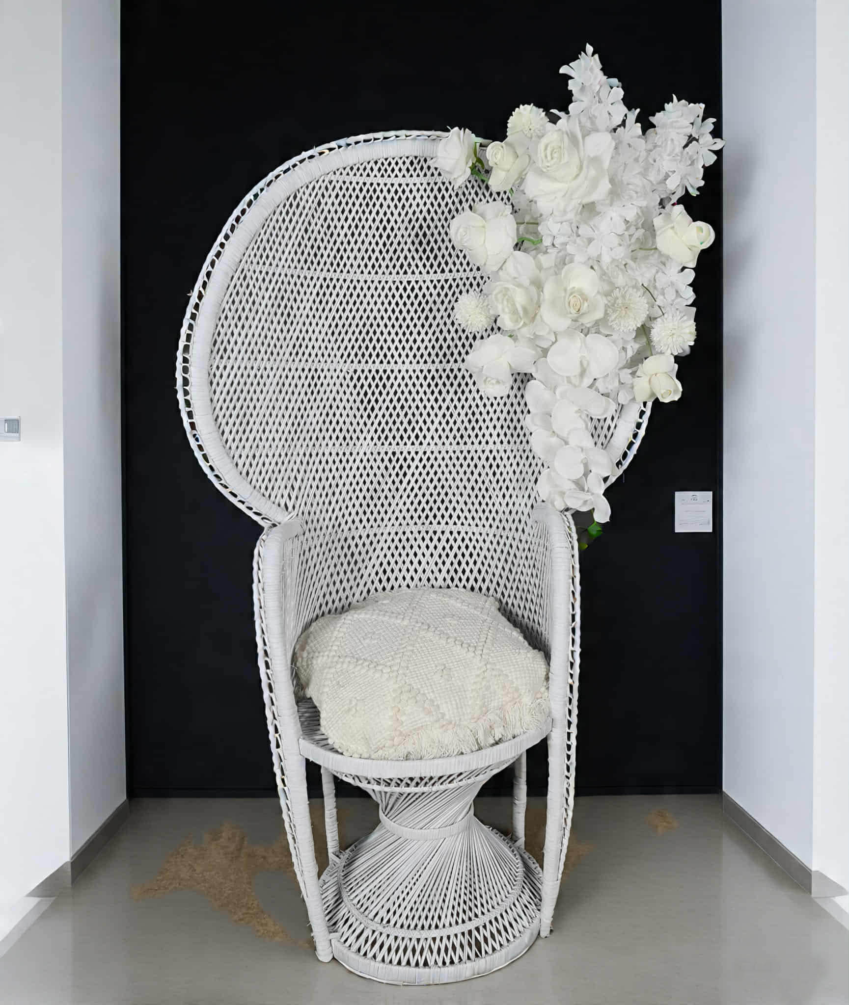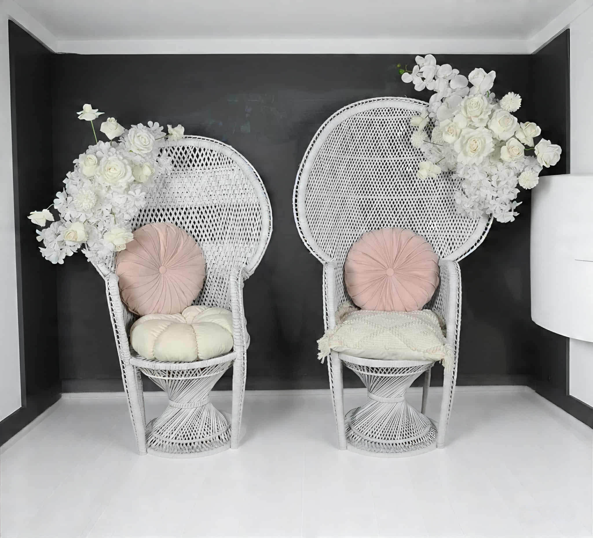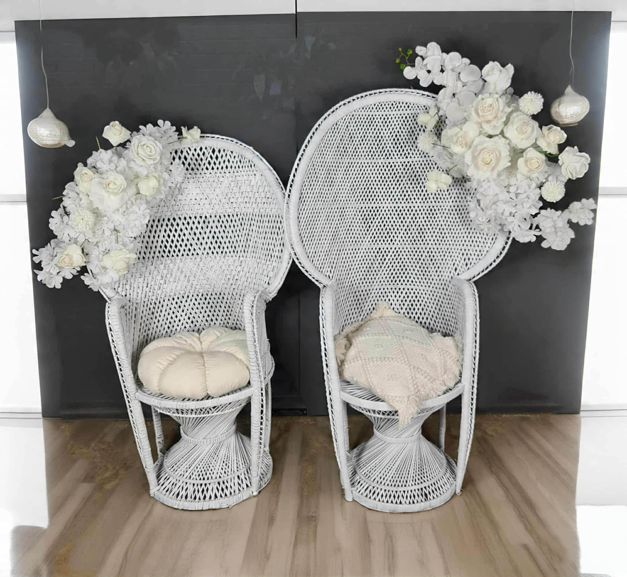 - White peacock chair with cushions MEDIUM ABH501 $40