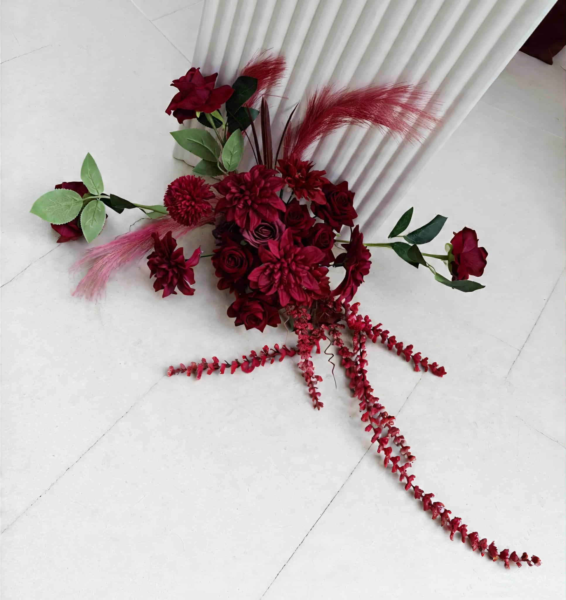 Burgundy / dark red hanging flowers SMALL – easel, welcome sign, arch, floor