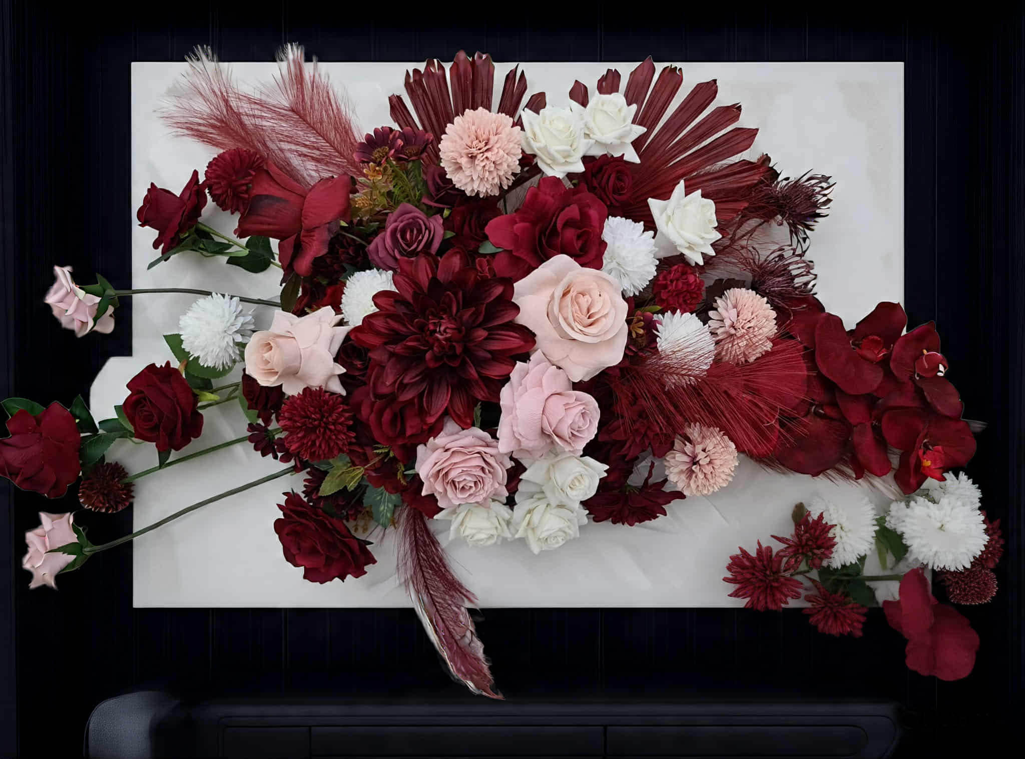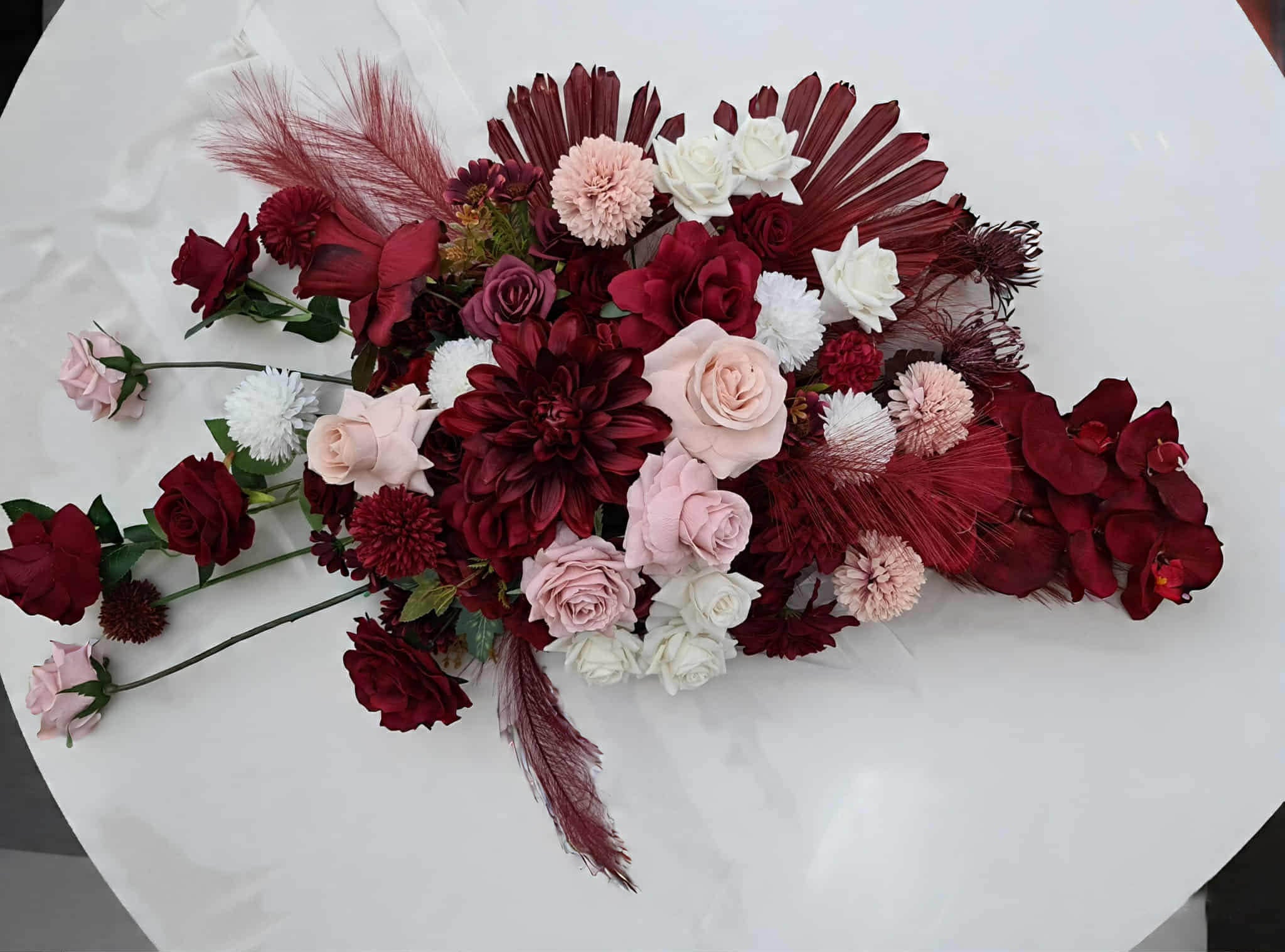 Large size burgundy, pink & flowers – can be used on backdrop / arch or arbour