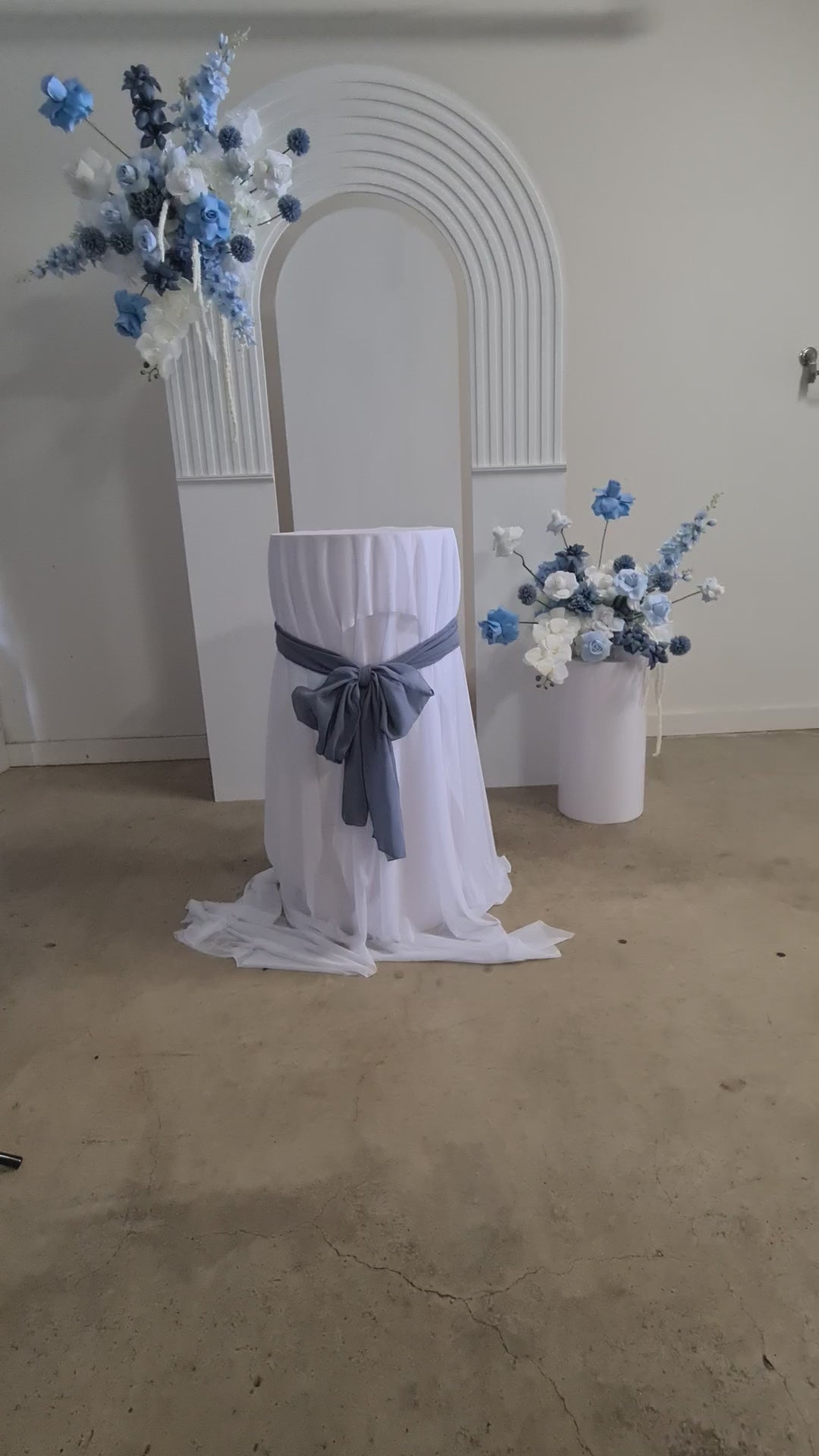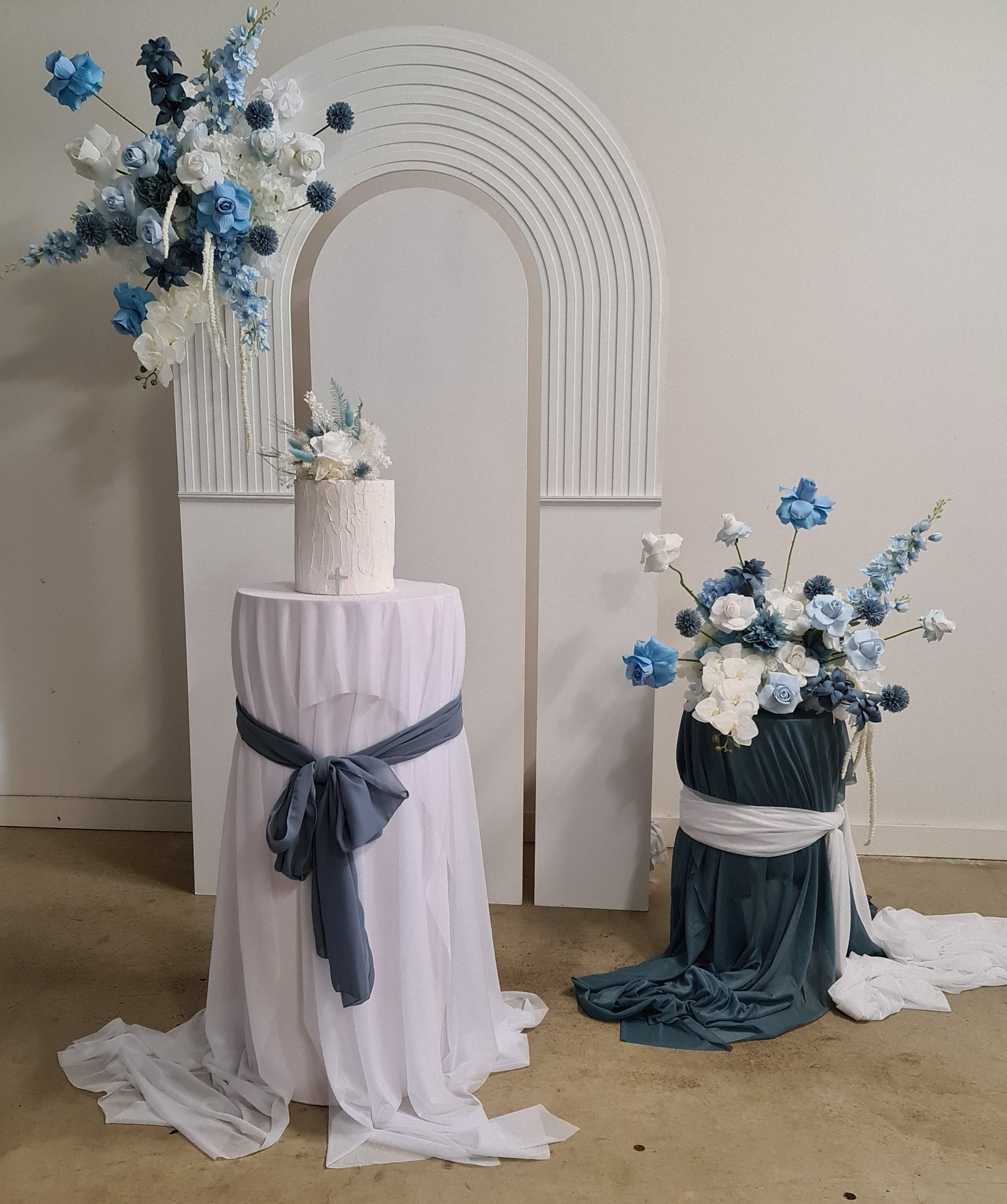 Double arch / backdrop 2 x white blue flowers & plinths package
