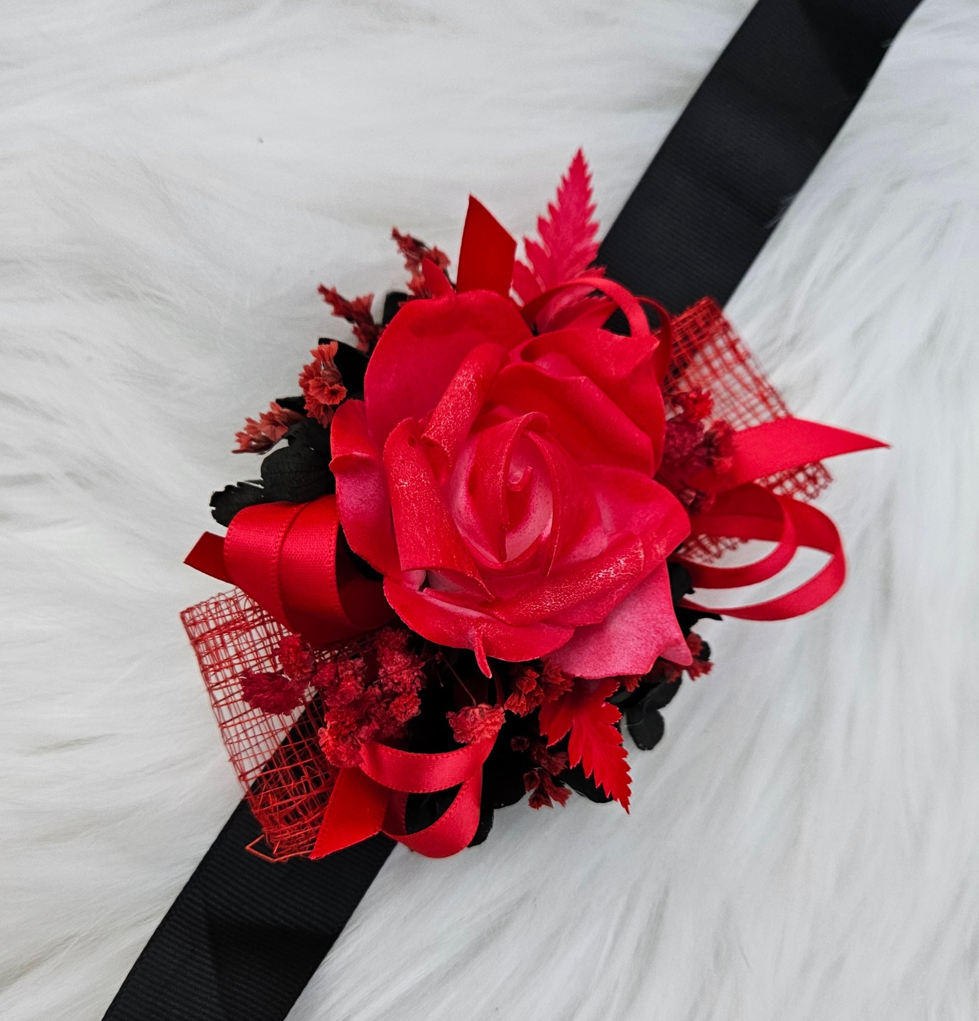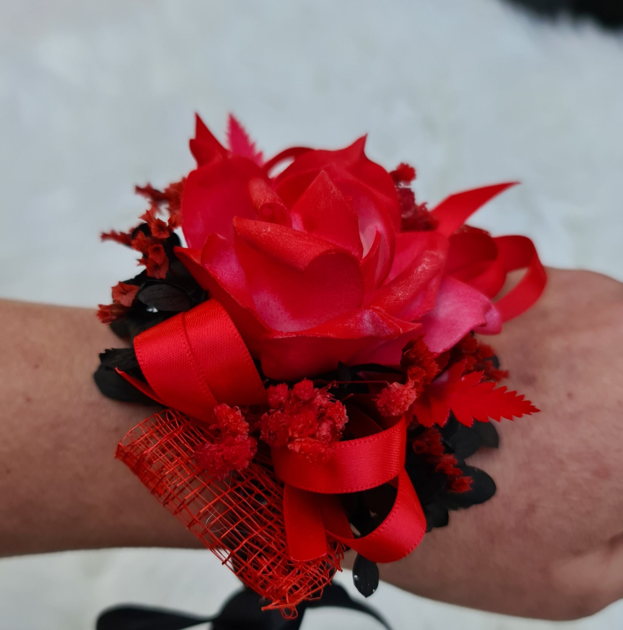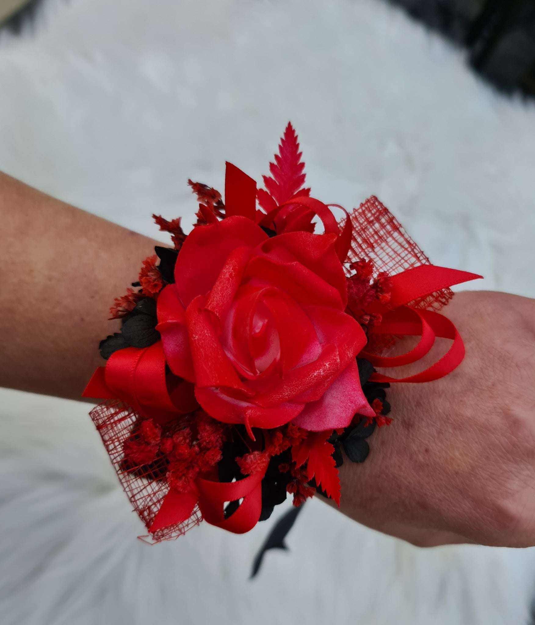 Everlasting flowers black & bright red corsage - School formal / Wedding