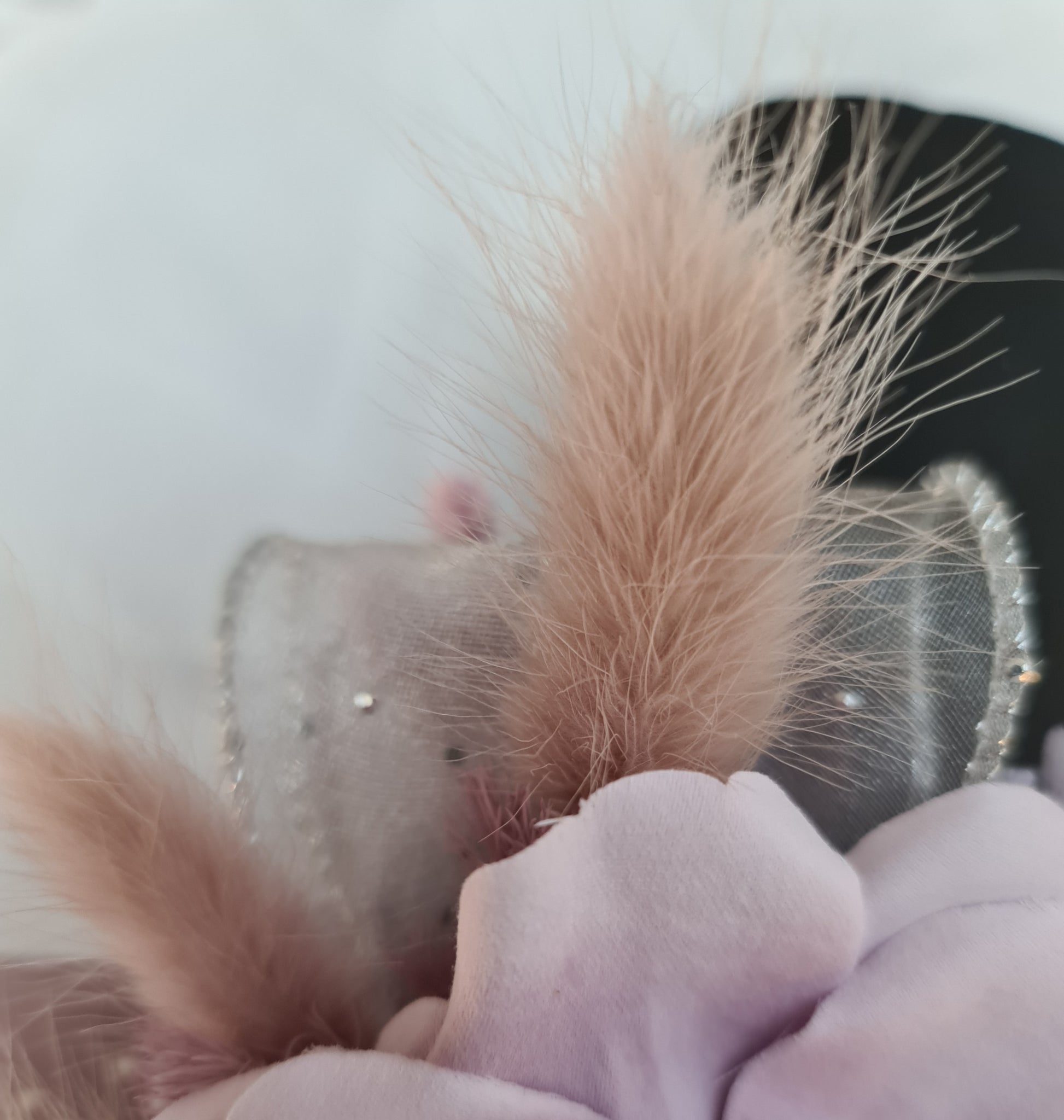 Preserved flowers with dusty violet silk rose and silver ribbon with diamantes