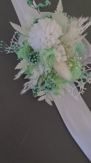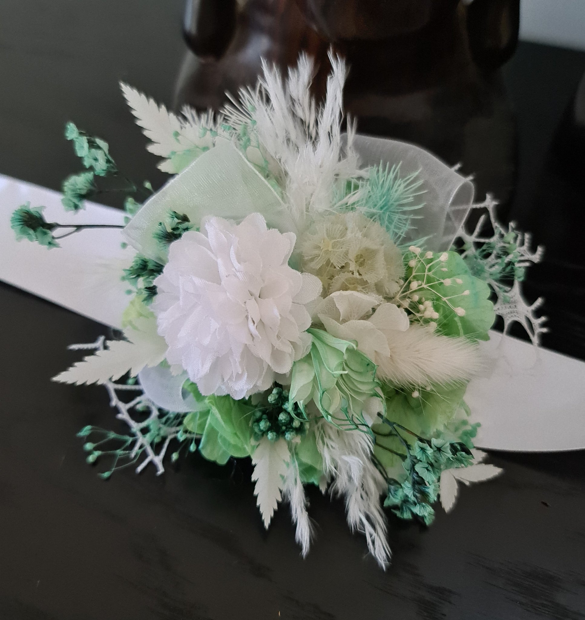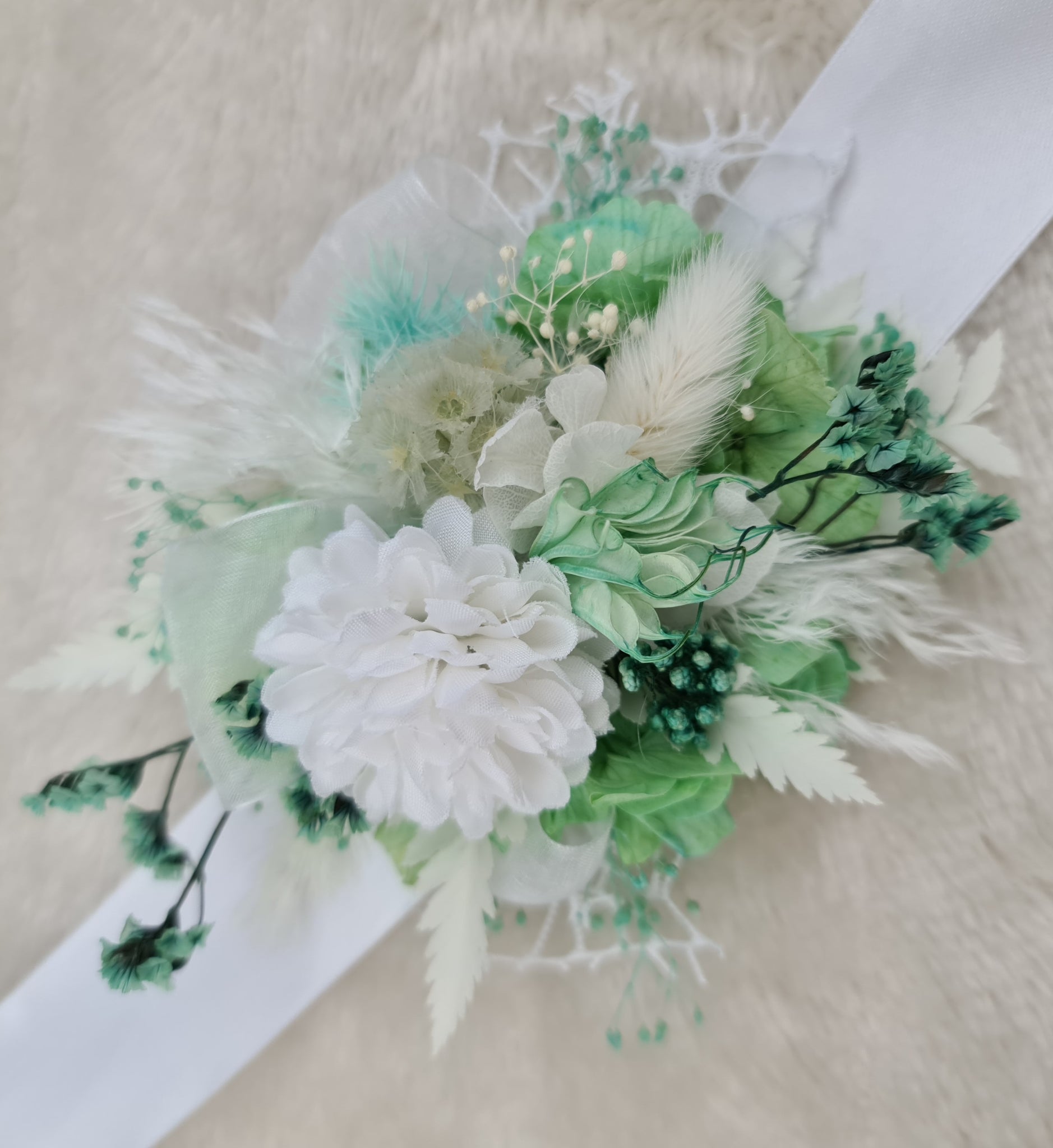 Everlasting flowers mint green & white corsage - School formal / Wedding