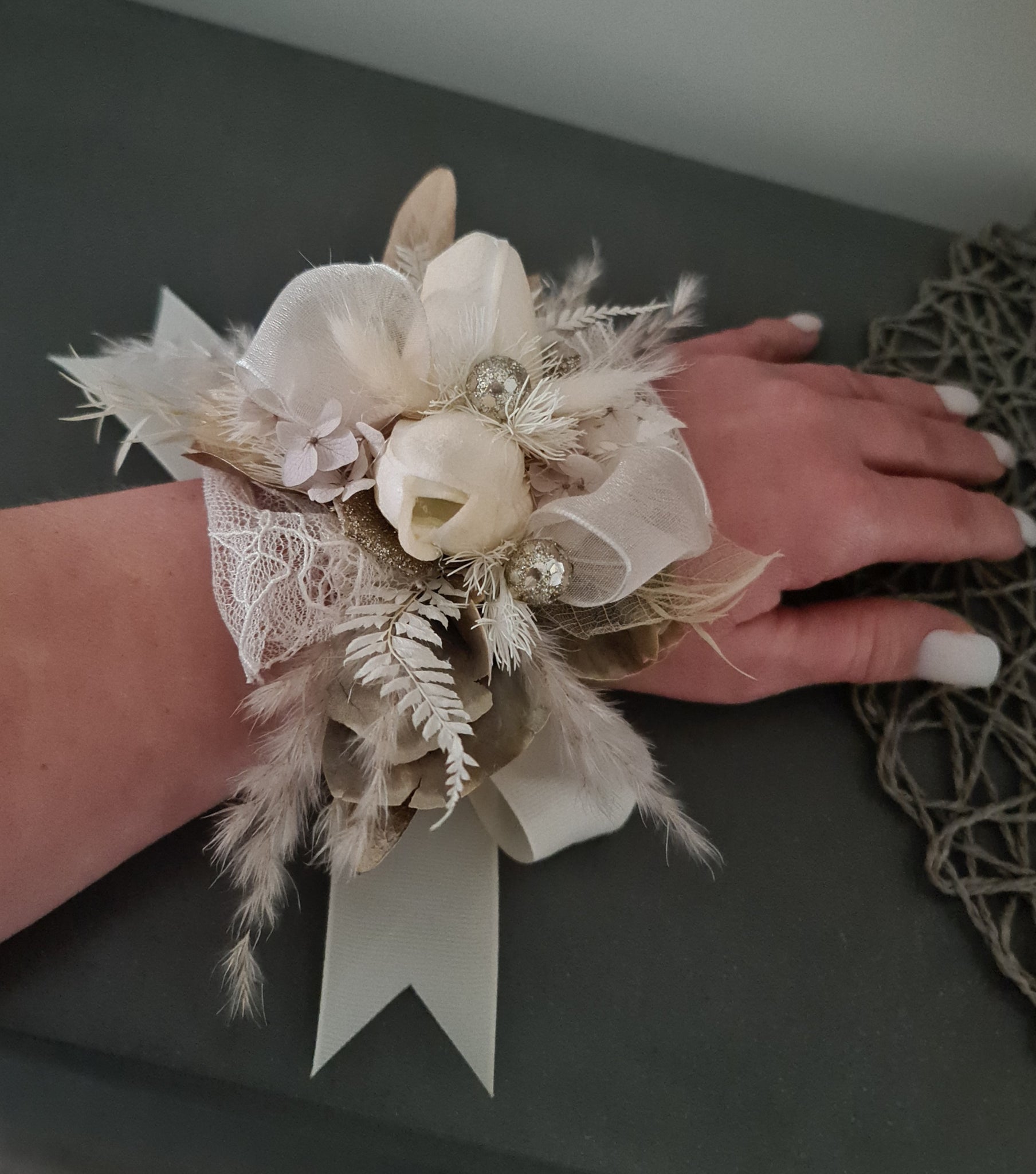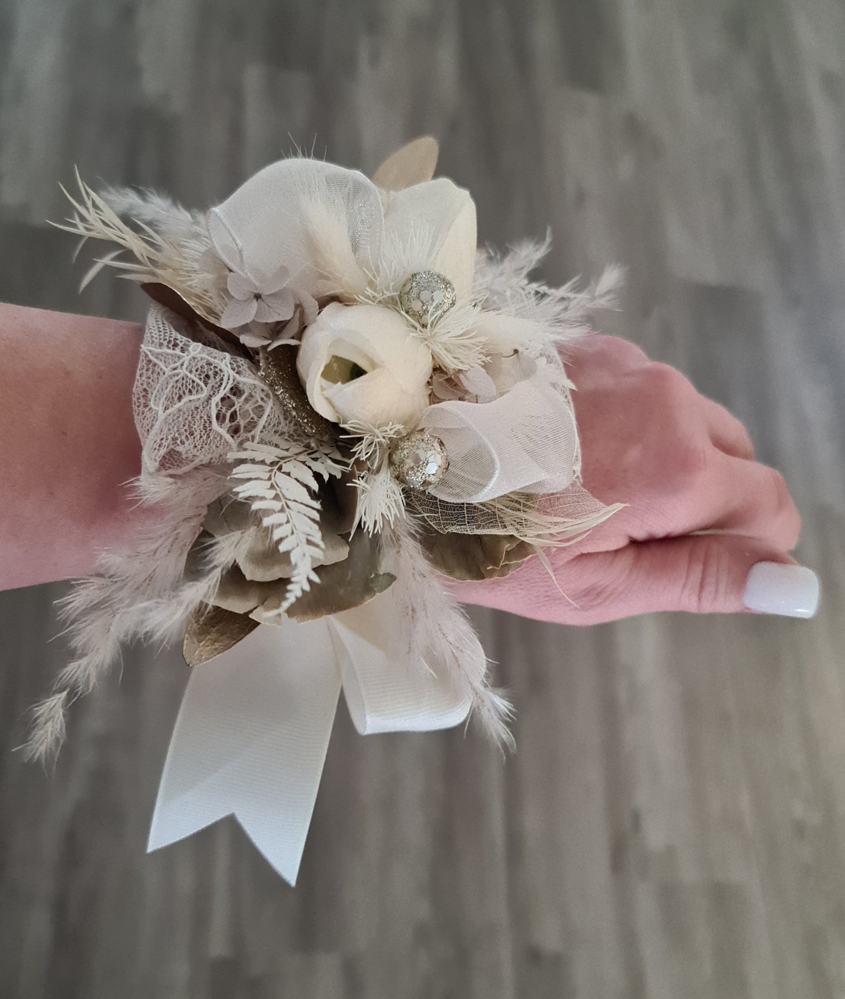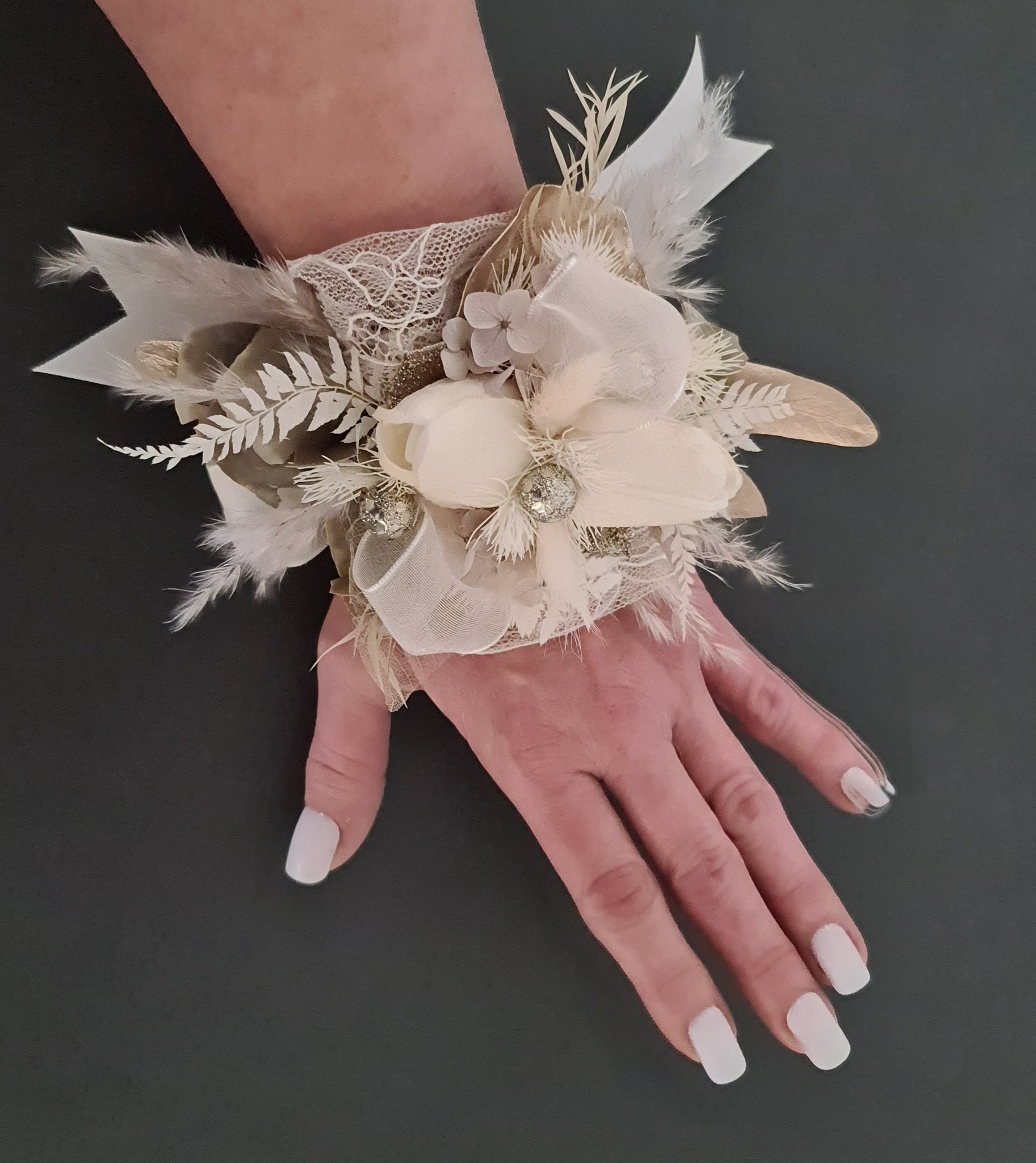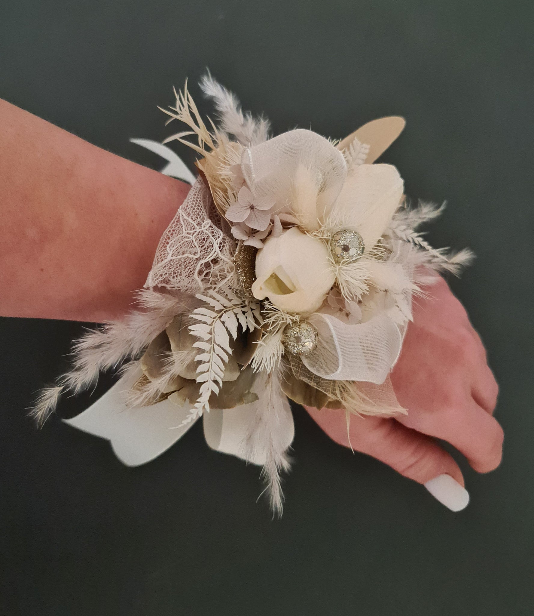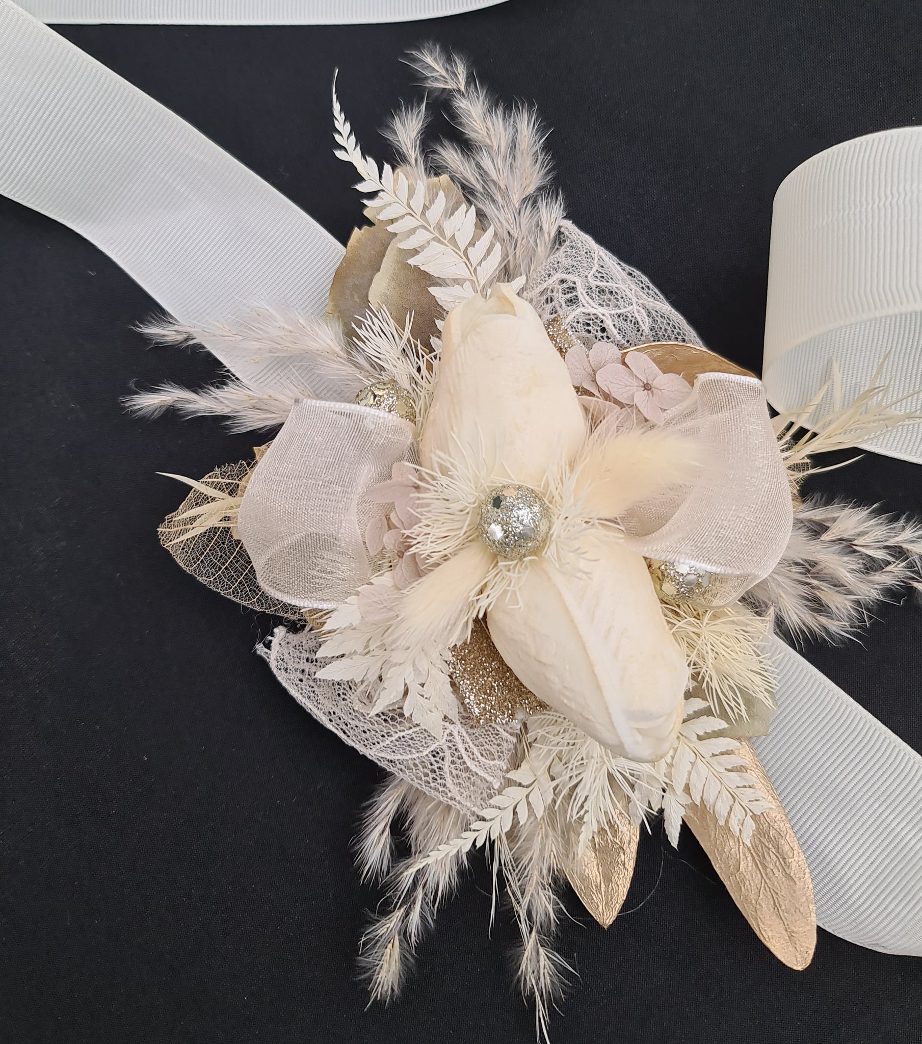 Everlasting flowers neutral & champagne gold corsage w tulips - wedding, school formal