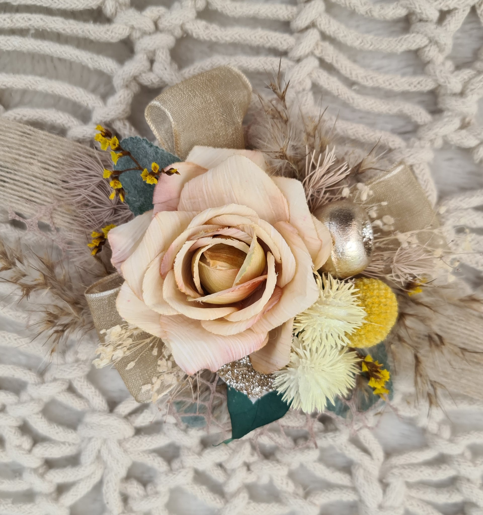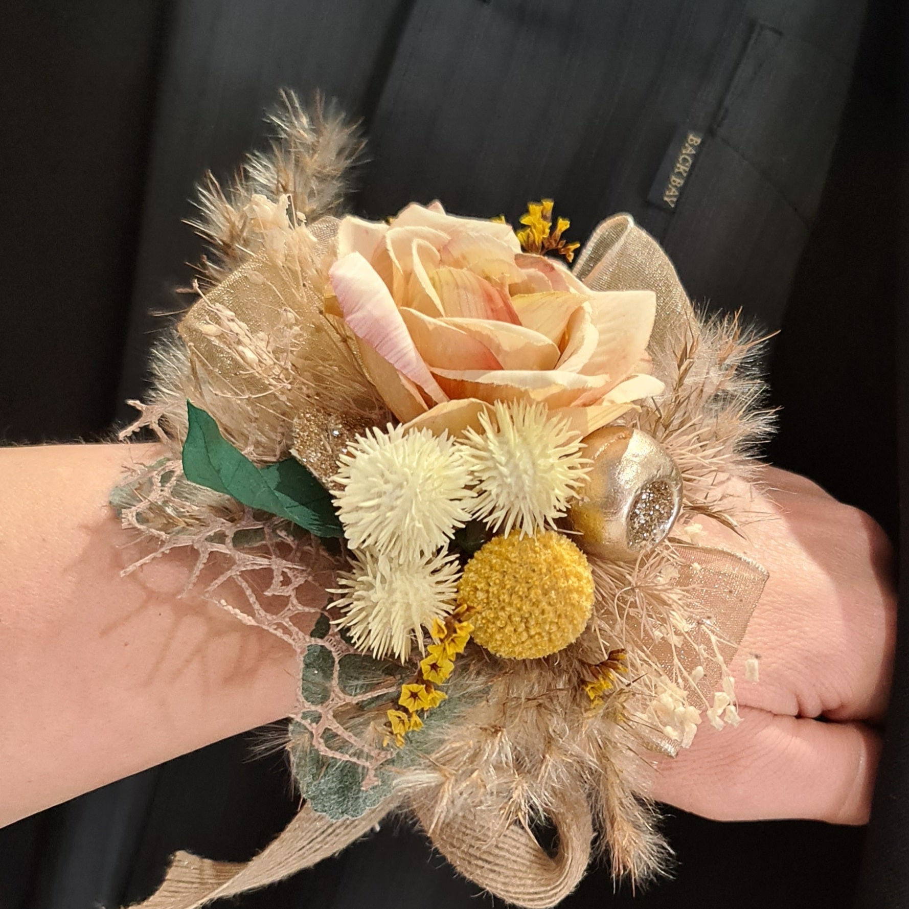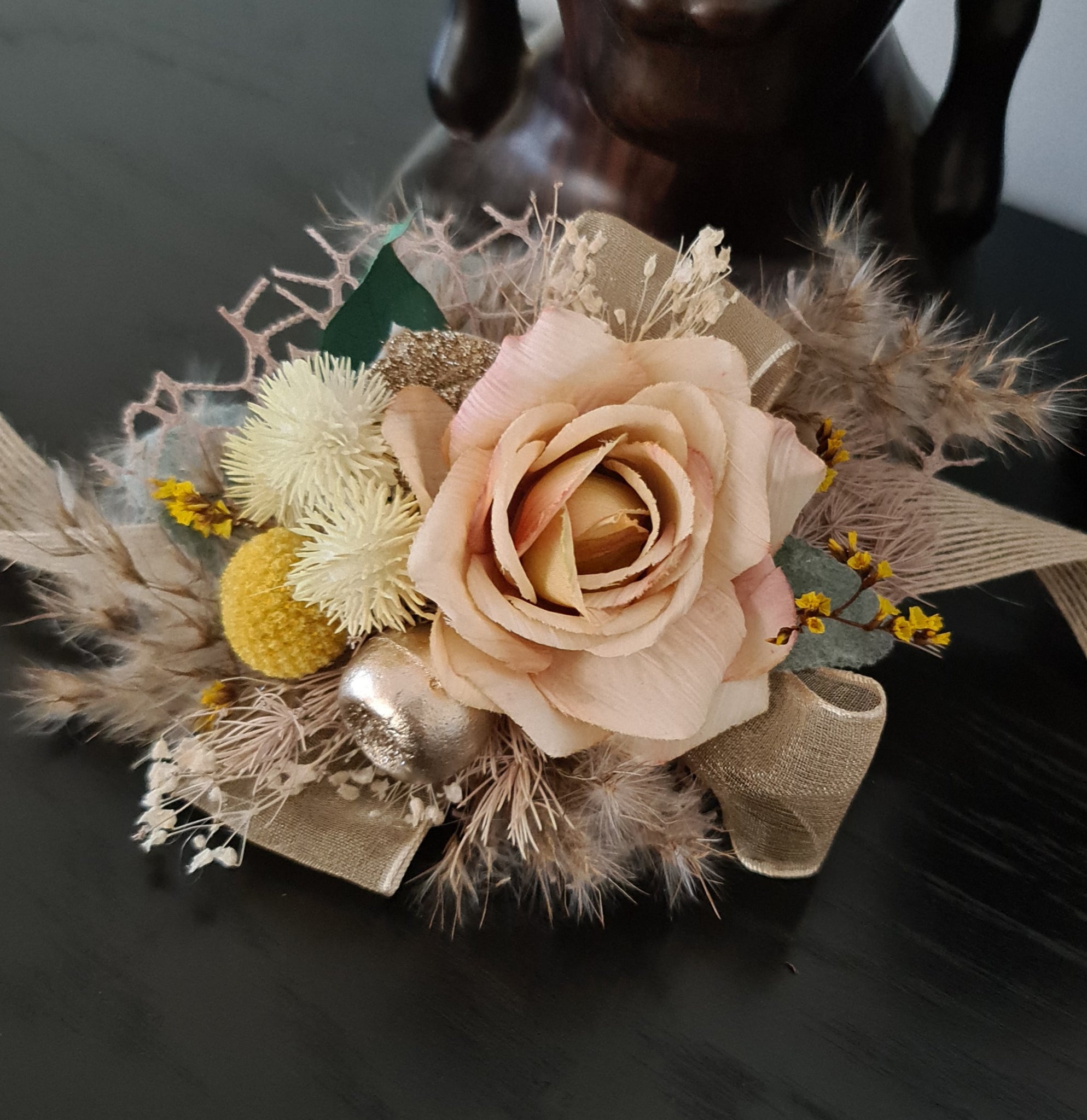 Everlasting flowers peach corsage w glitter - School formal / Wedding