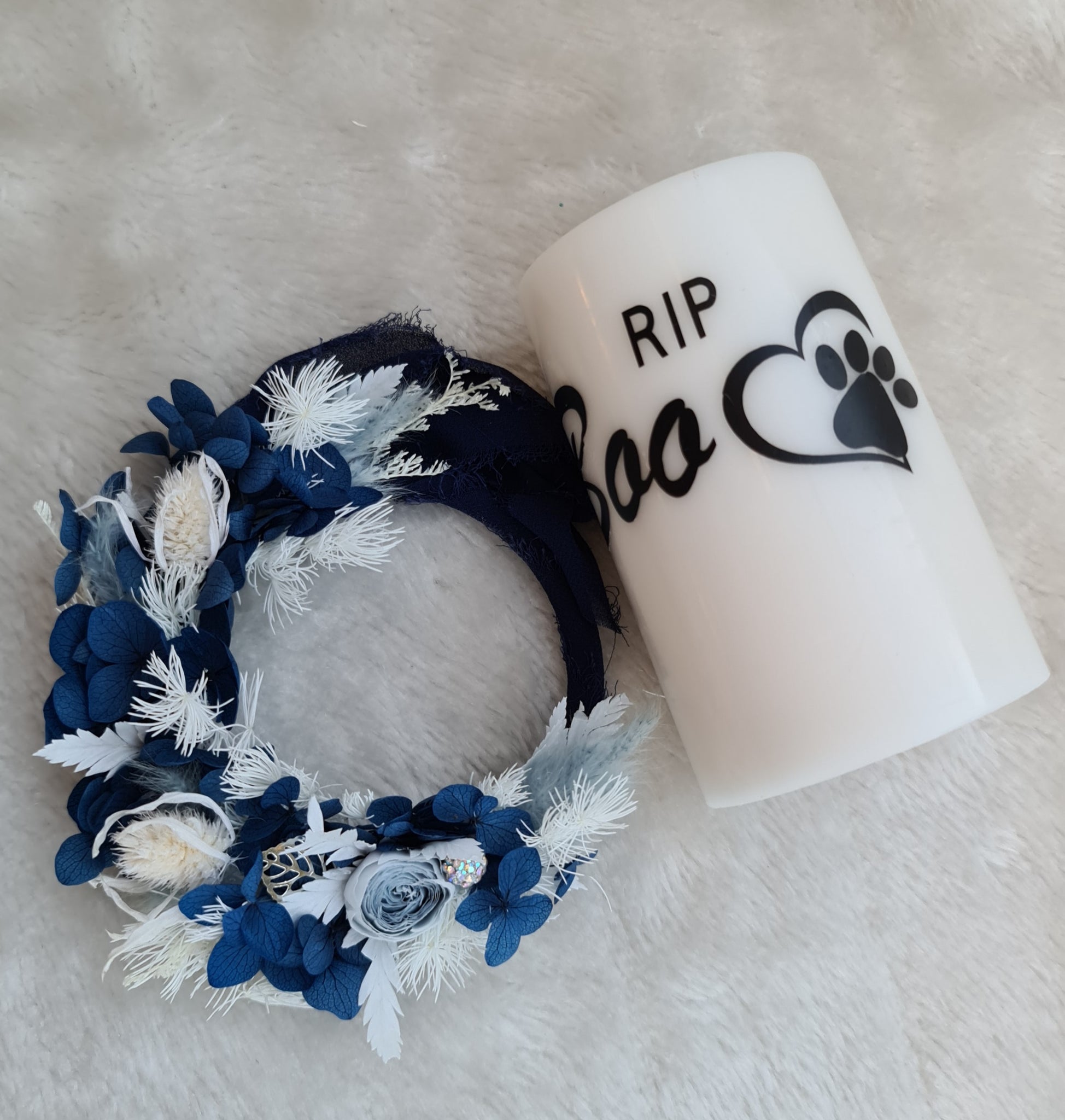 Pet Memory dog /cat Everlasting flowers reef & candle set - blue