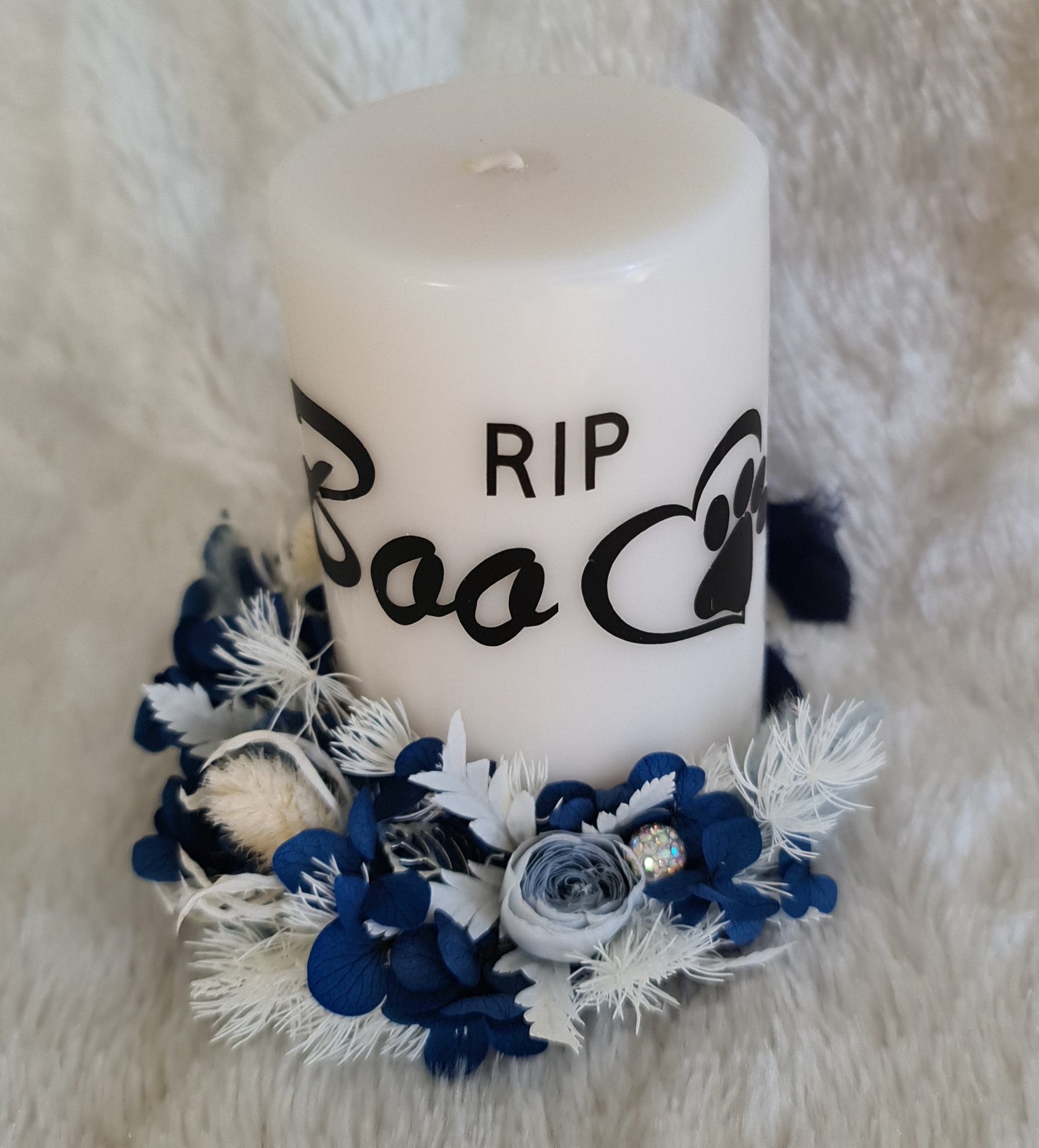 In loving memory of your pet – everlasting flowers reef & custom name candle