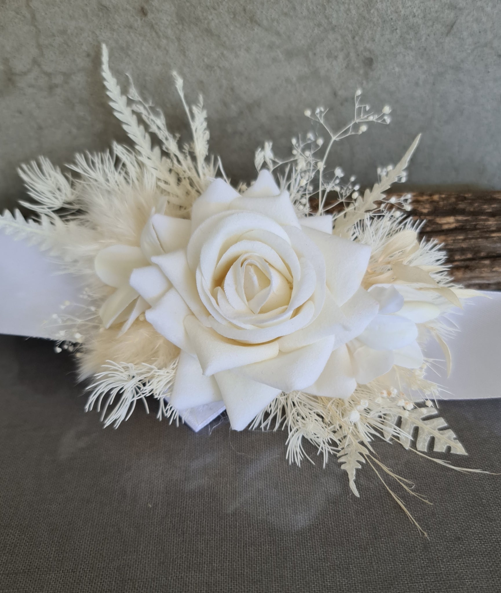 Everlasting flowers school formal / prom corsage - Milky white