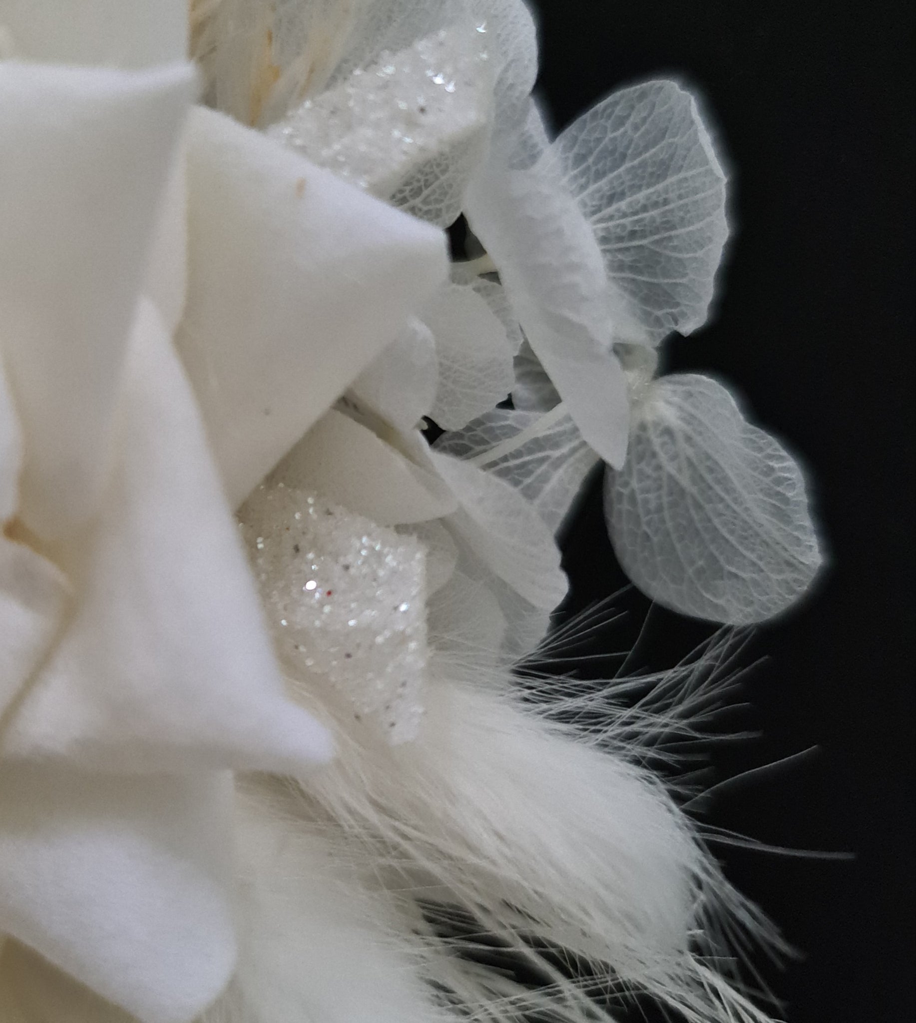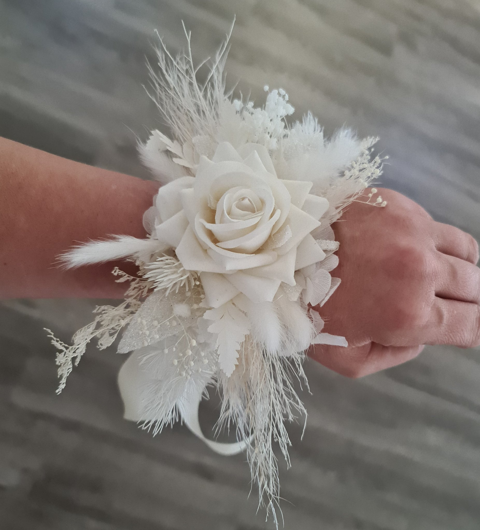 Everlasting flowers school formal / prom corsage - Milky white & glitter