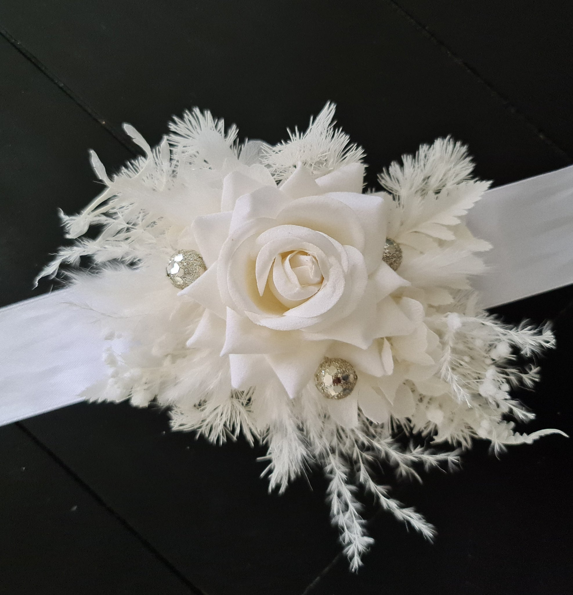 Everlasting flowers school formal / prom corsage – White & champagne gold