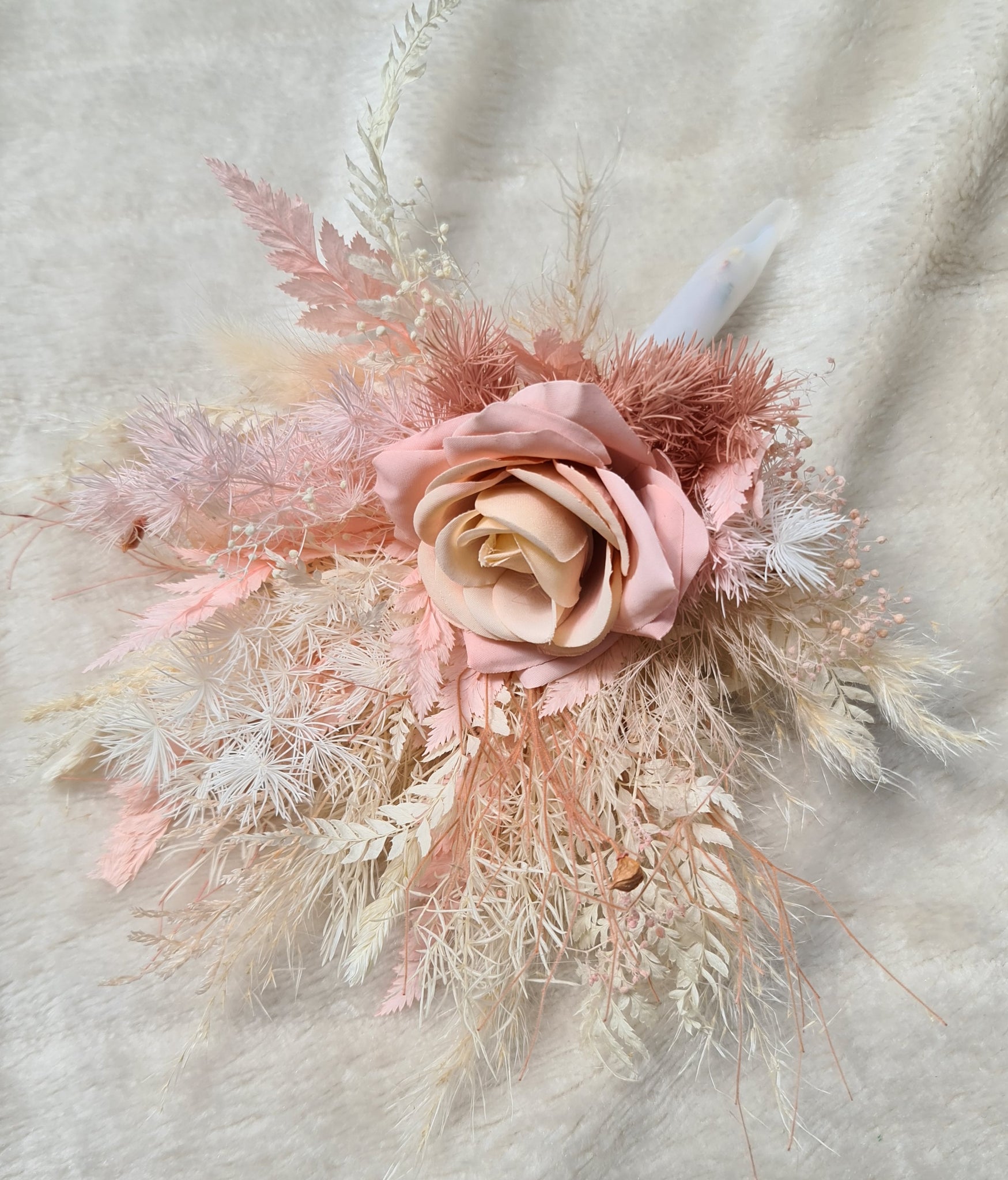 Floral cake topper combination of preserved flowers & silk rose in blush