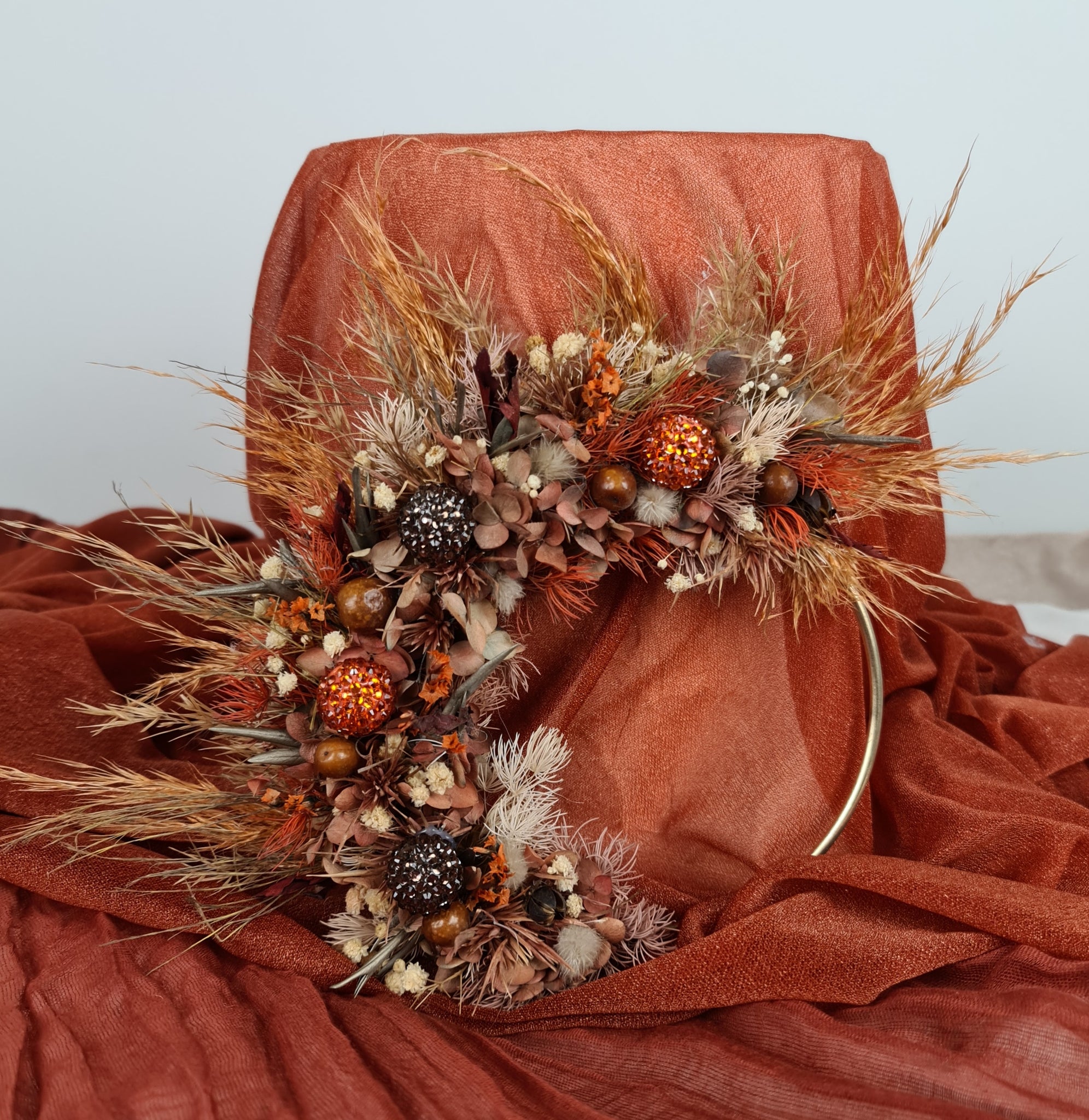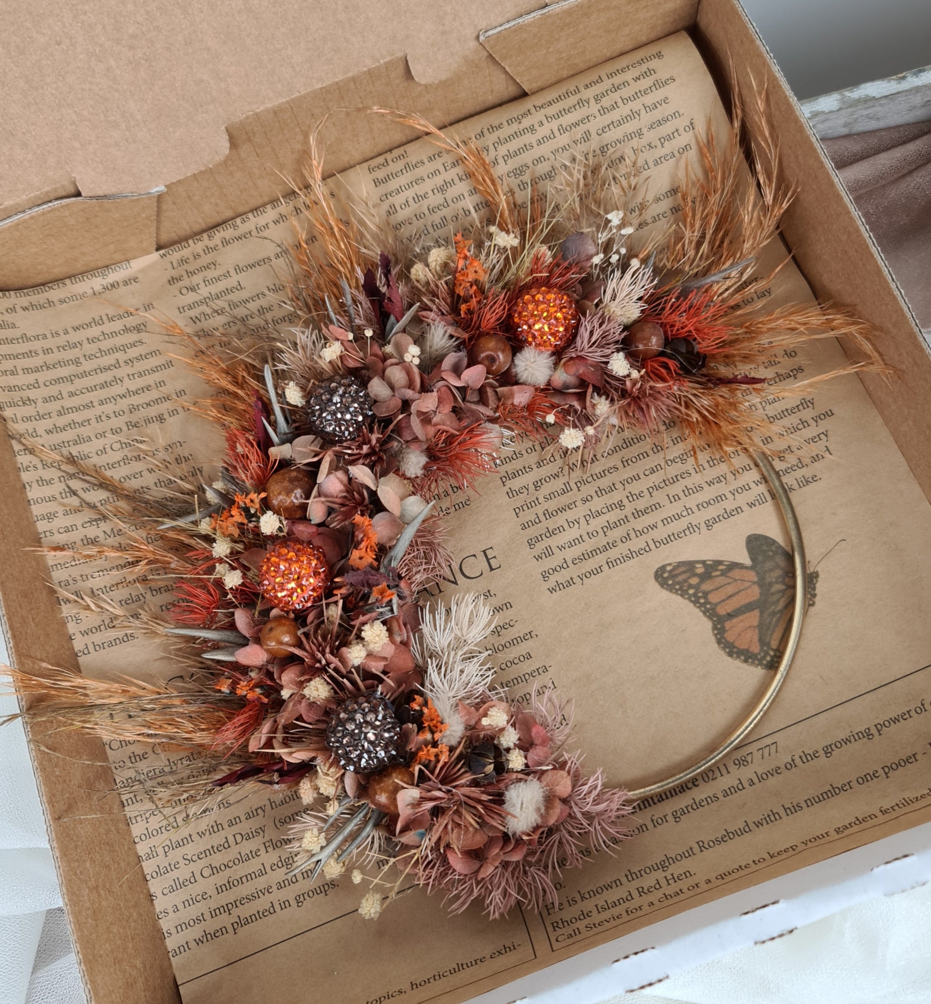 5 inches Floral cake hoop combination of preserved & dry flowers with crystals
