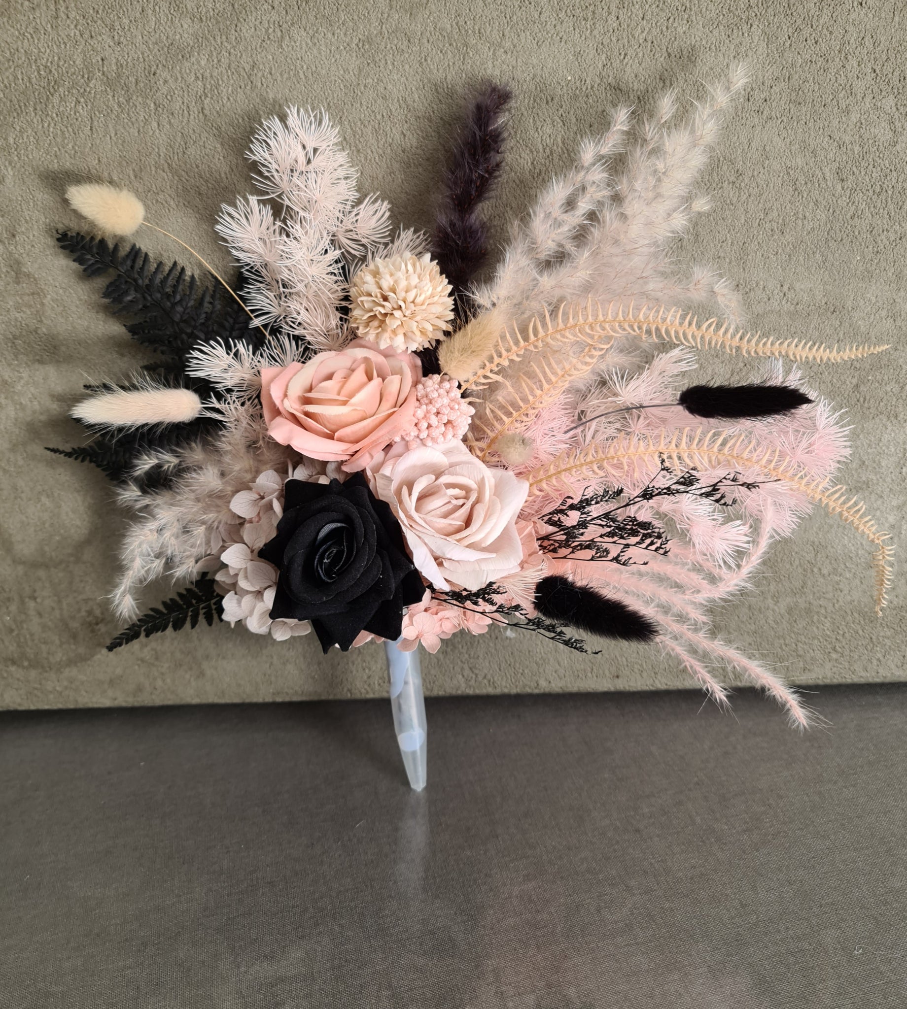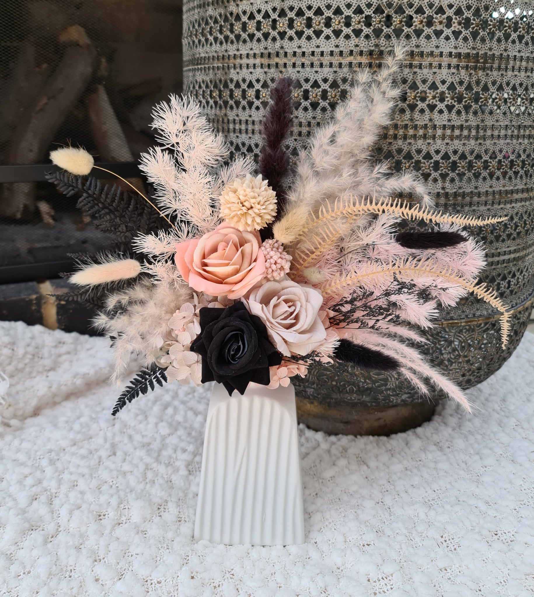 Combination of silk & preserved everlasting flowers with preserved black fern