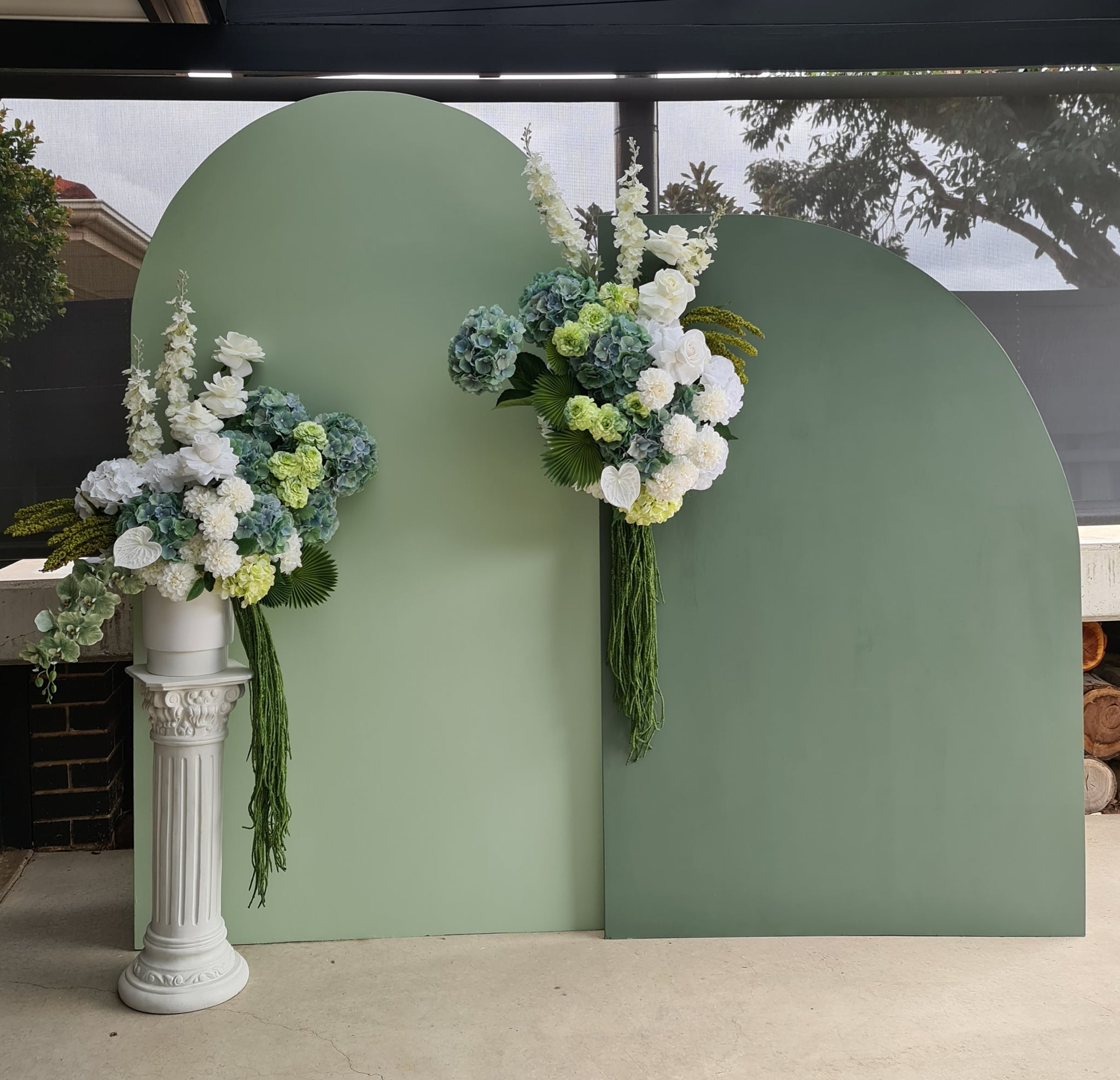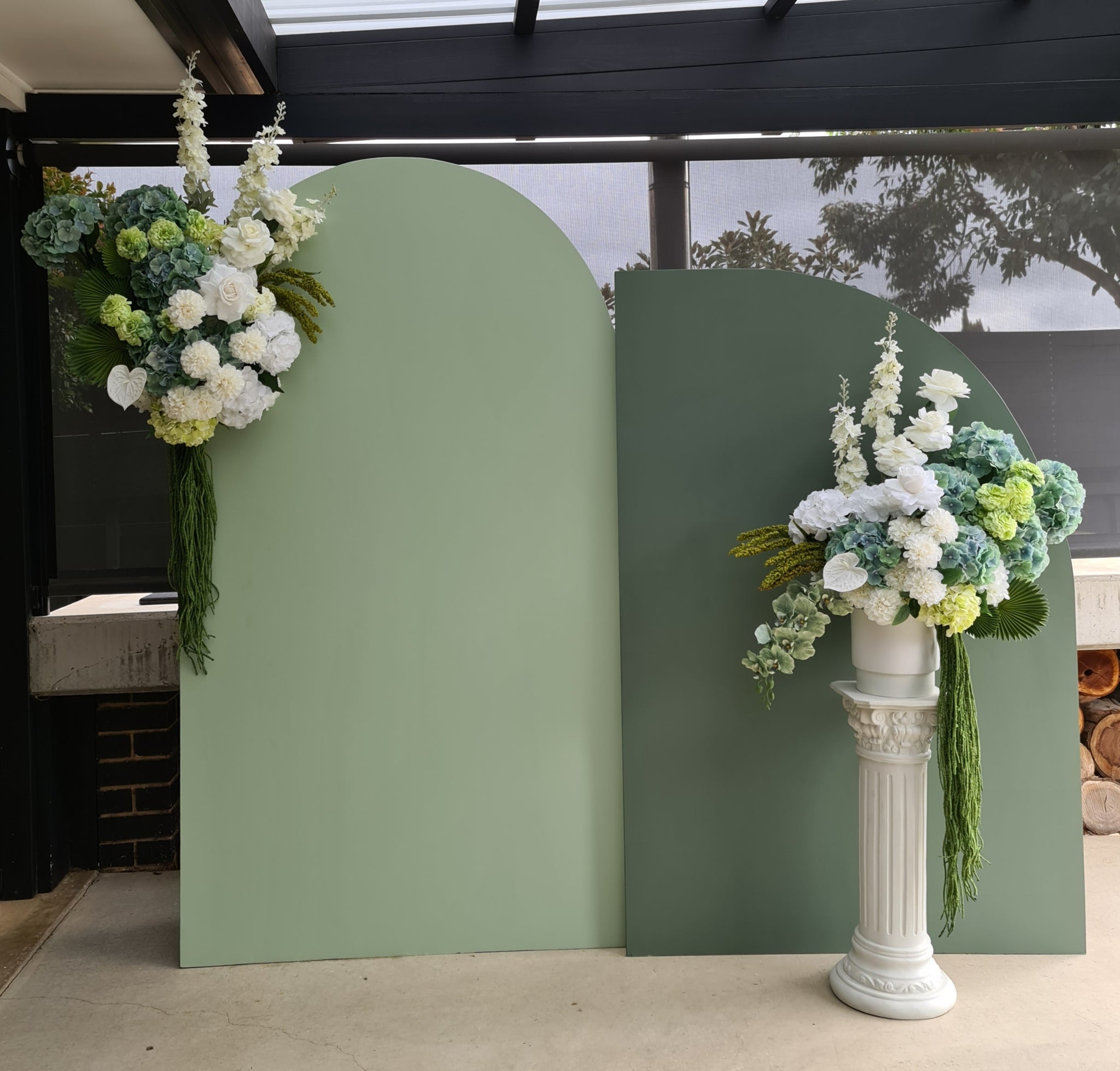 - Arch Backdrop sage green – 2.17m tall (ABH378) - $90