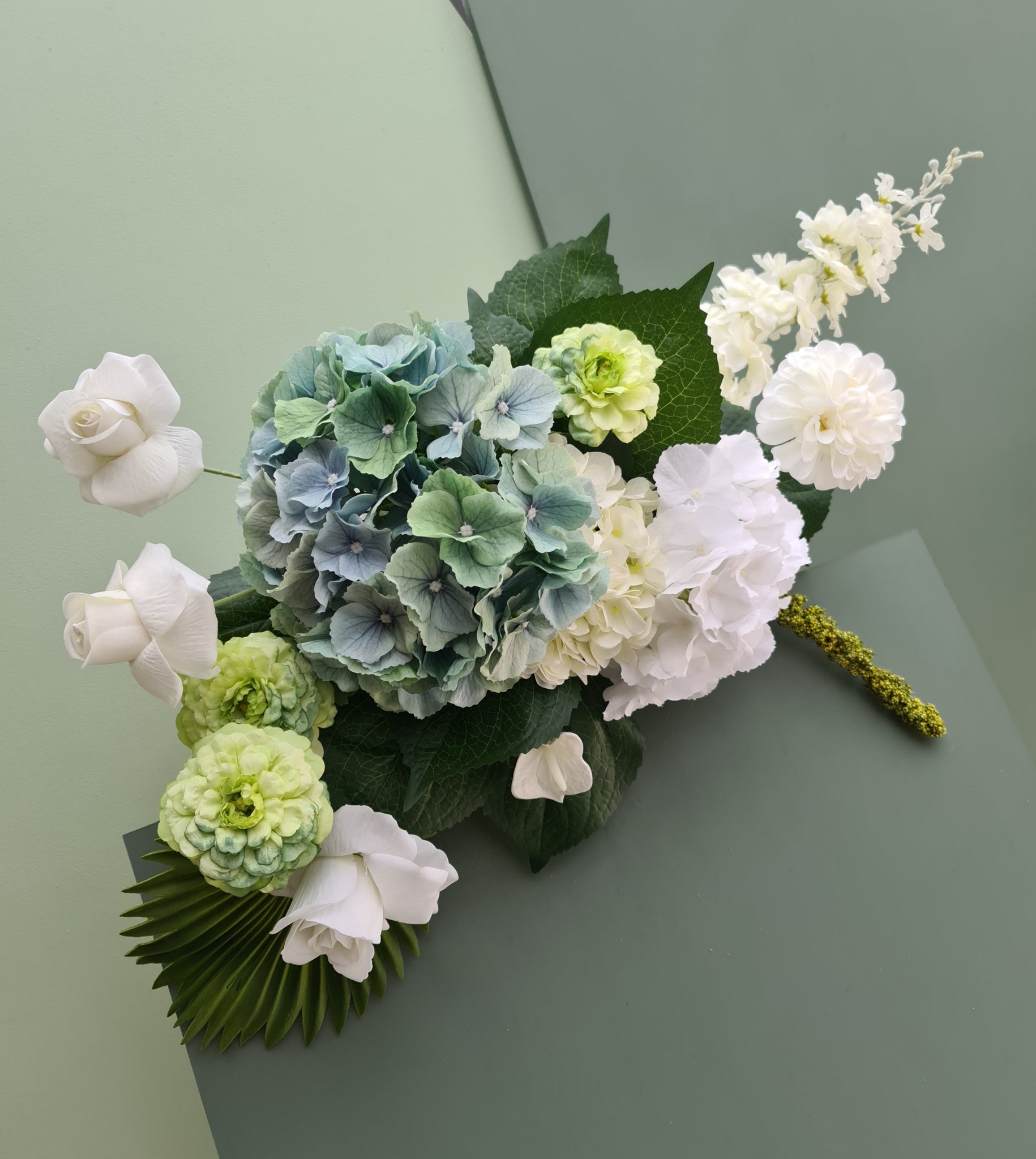 - Green & white large hanging flowers for arch / backdrop / arbour – (ABH383) - $80