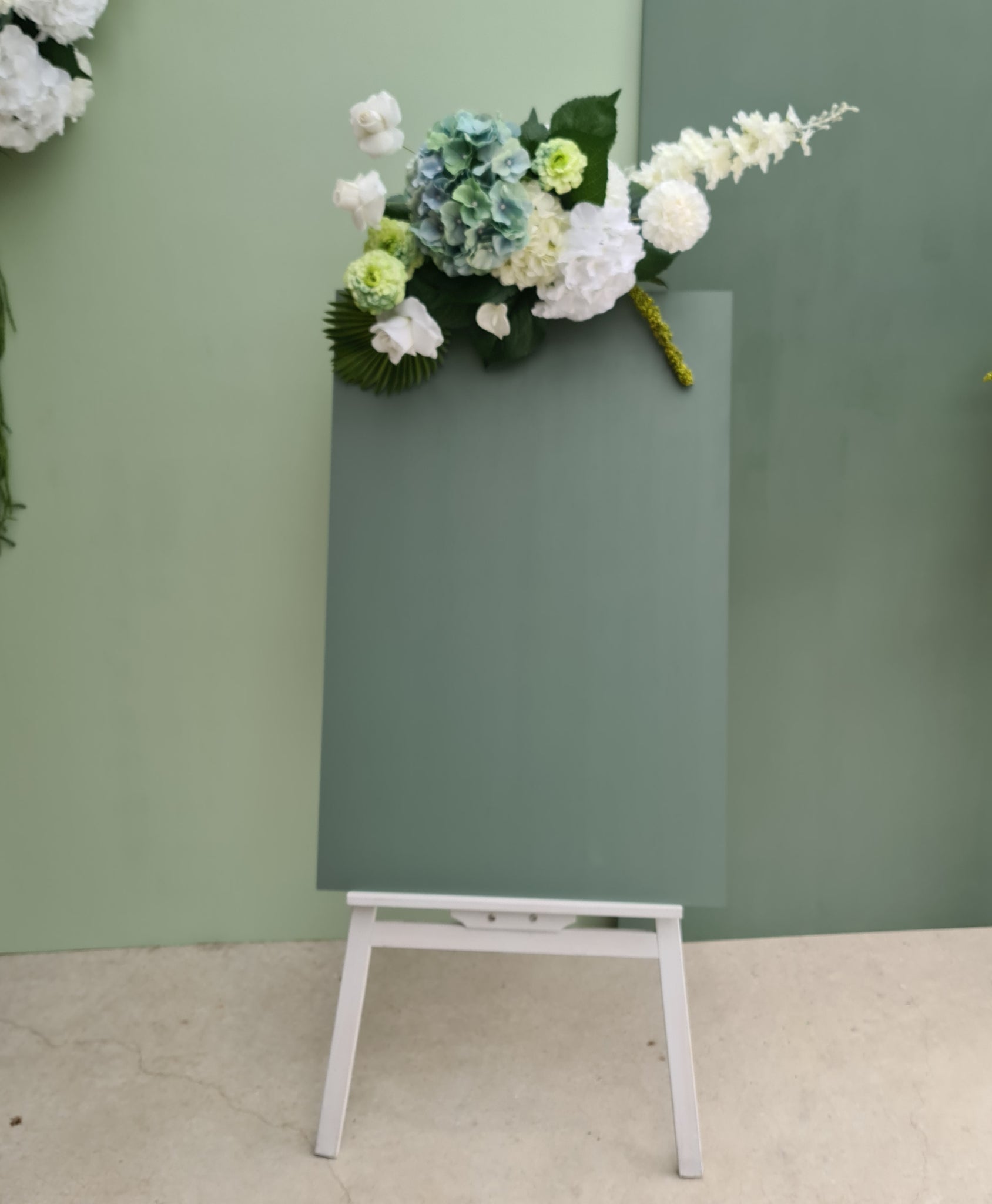 Green & white – 2 x backdrops & 2 x flowers + welcome sign – Advanced package No 1