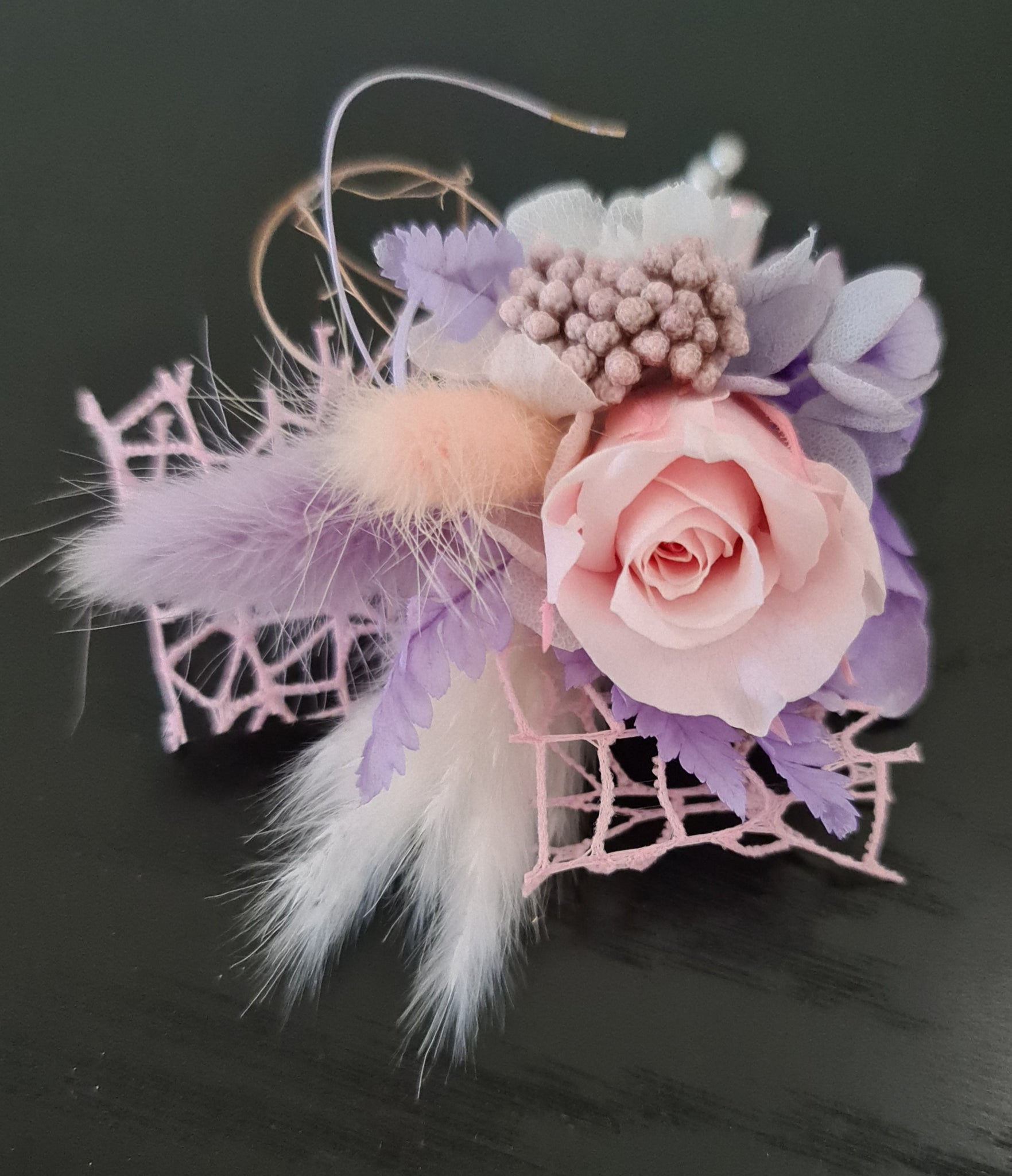 Groom or Groomsman / Wedding buttonhole with preserved flowers in shade of pink & purple and mini preserved rose in pink