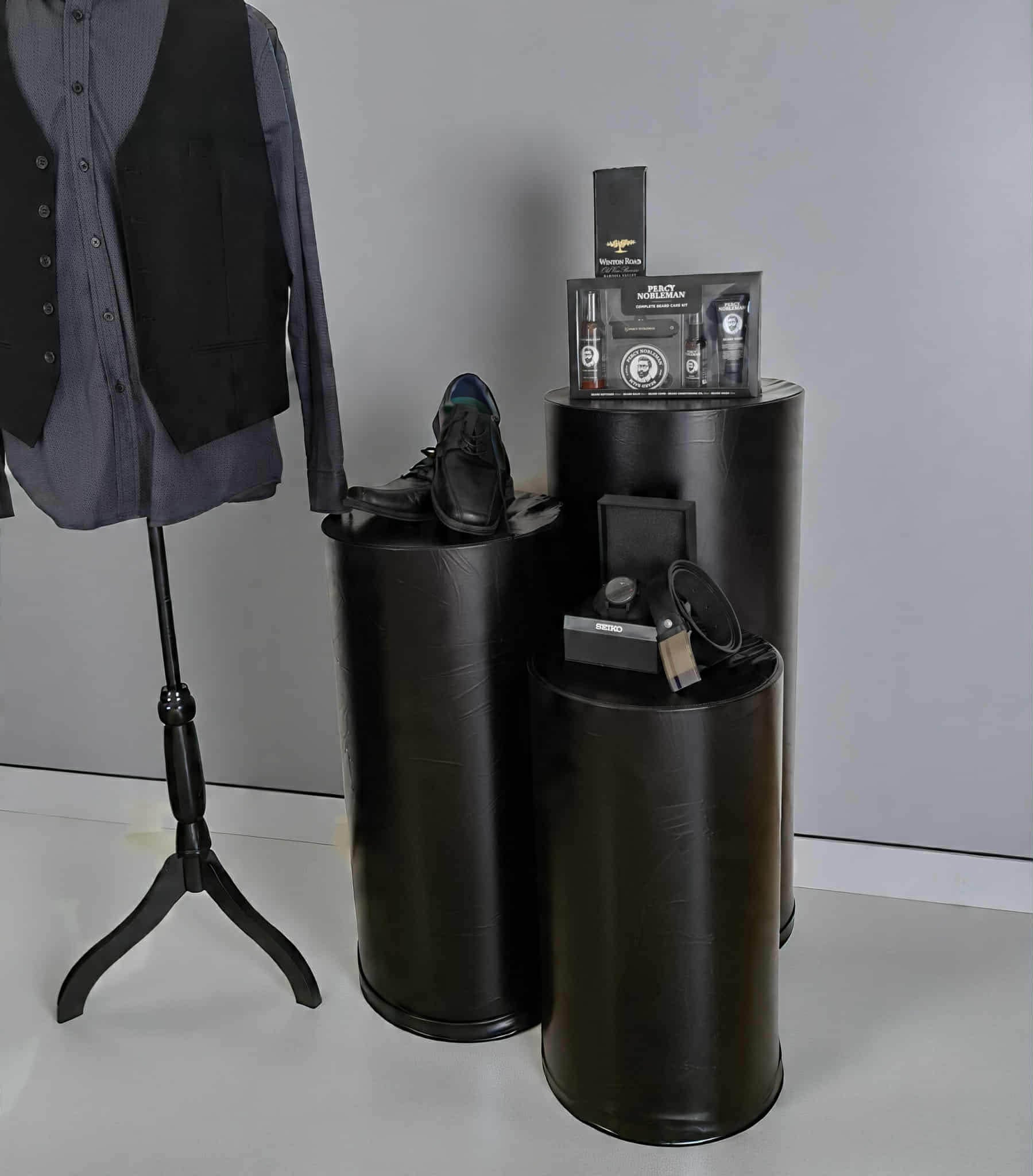 - Black leather look cylinder plinth - 90cm, 75cm, 60cm, 55cm & 50cm ABH493 - $110