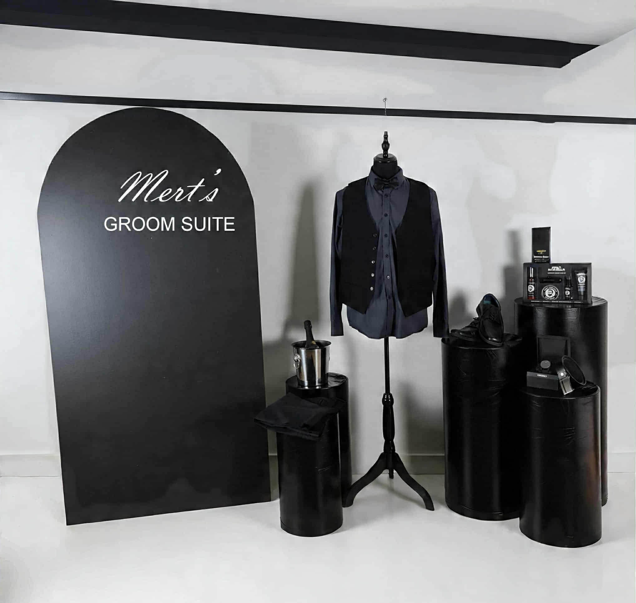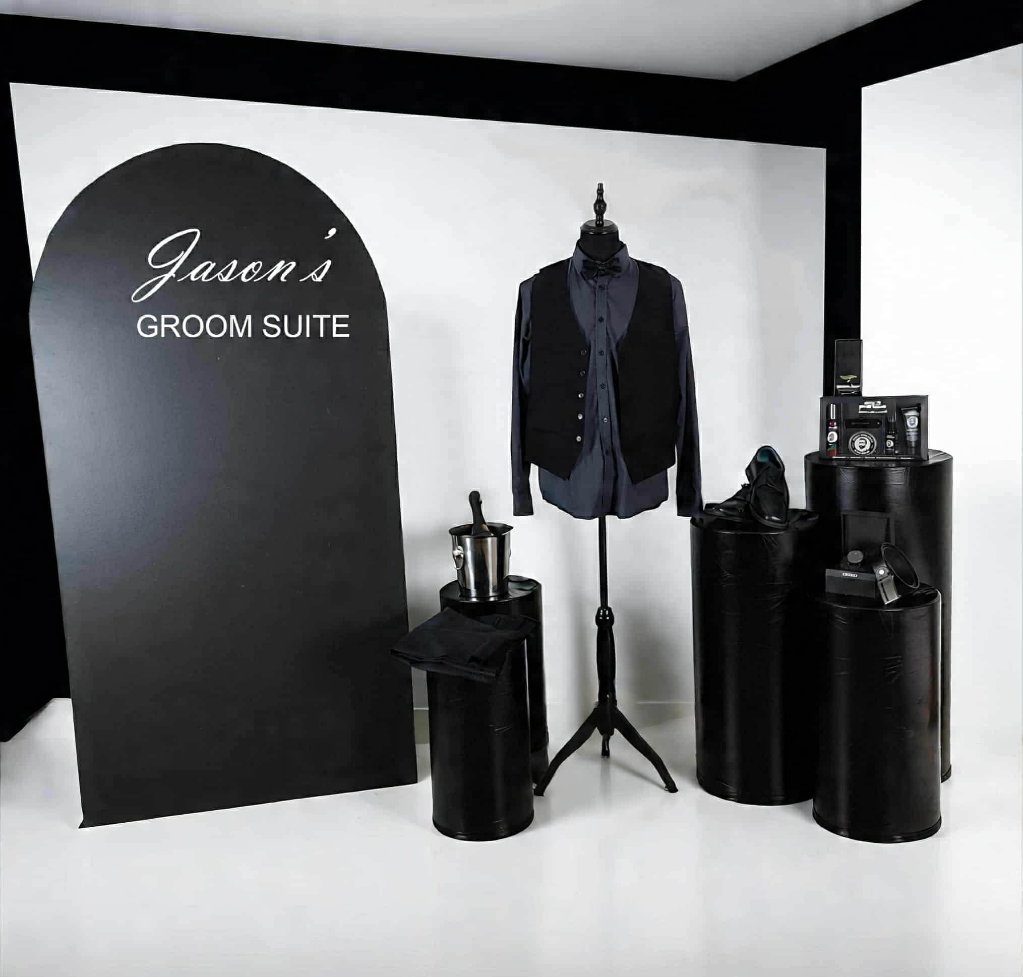 - Groom’s Suite / Preparation Room Black arch backdrop – 1.83m tall ABH492 - $70