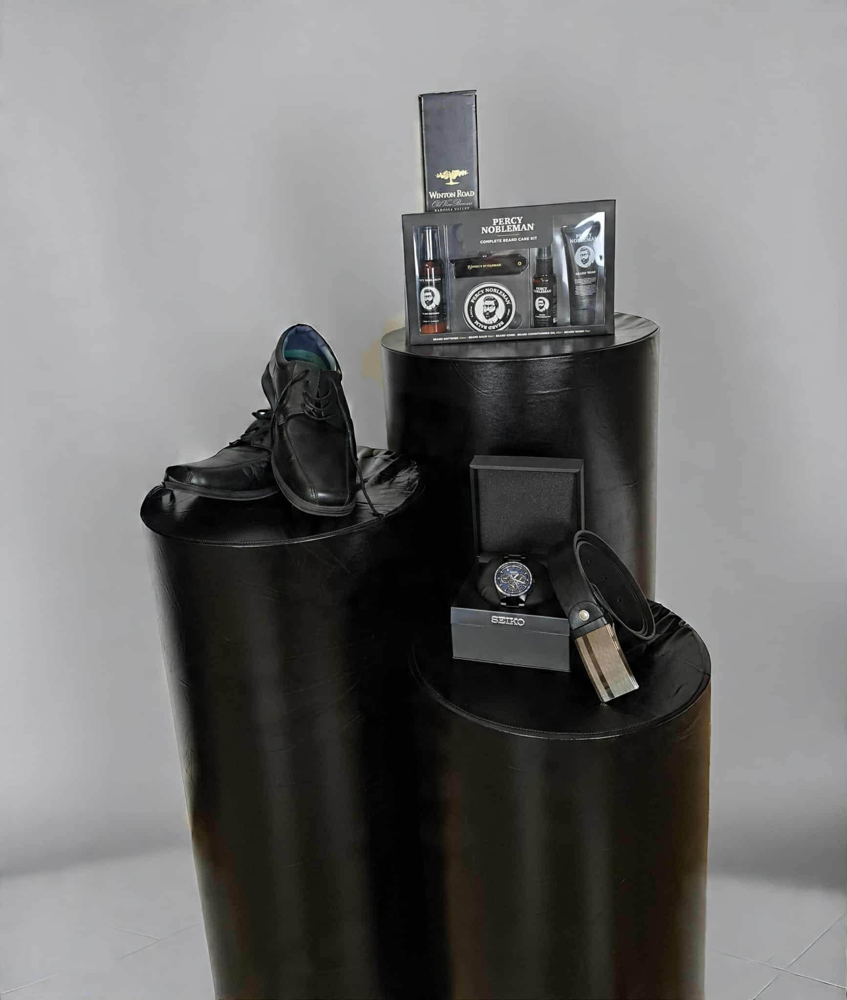 - Black leather look cylinder plinth - 90cm, 75cm, 60cm, 55cm & 50cm ABH493 - $110