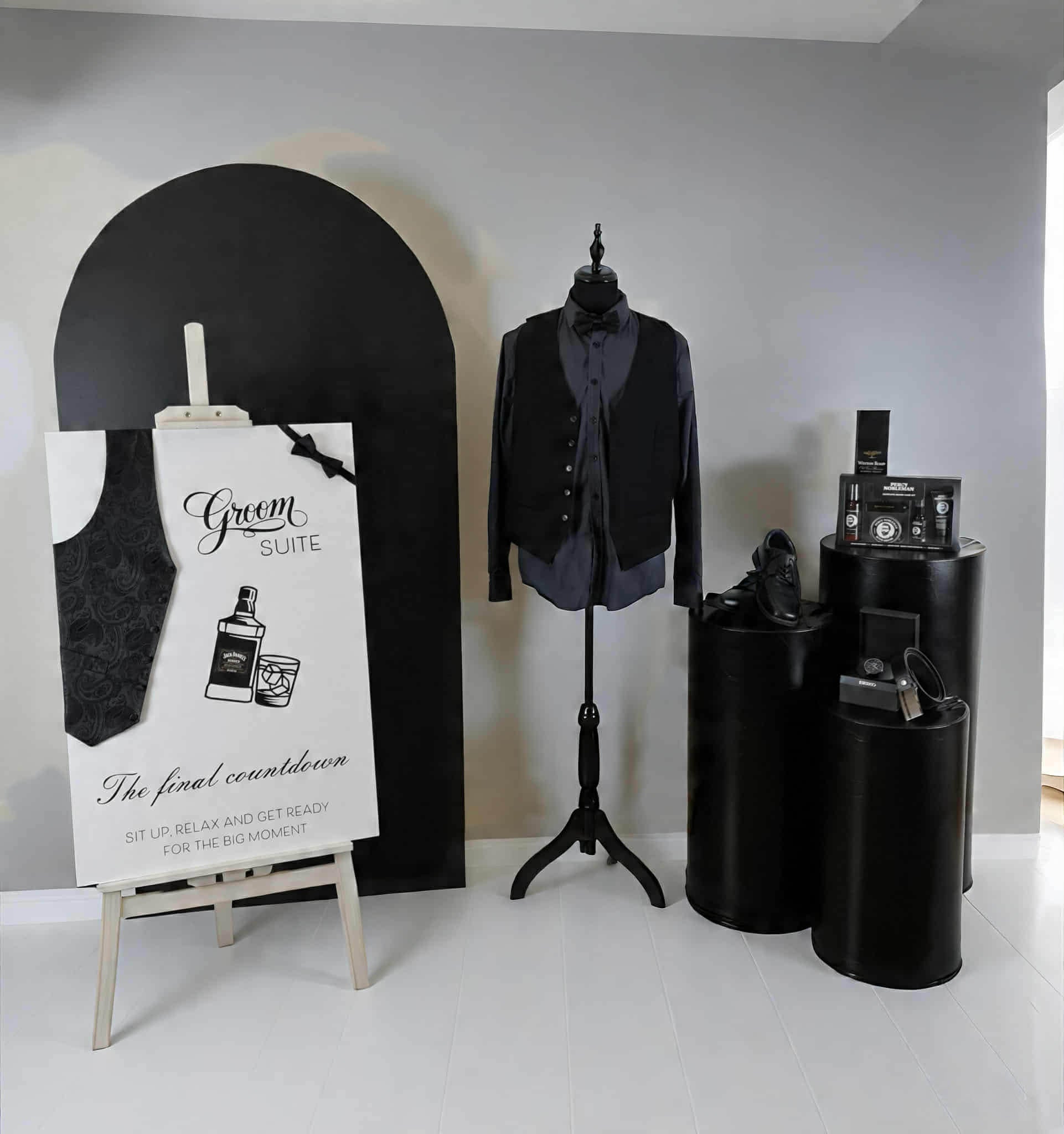 - Groom’s Suite / Preparation Room Black arch backdrop – 1.83m tall ABH492 - $70