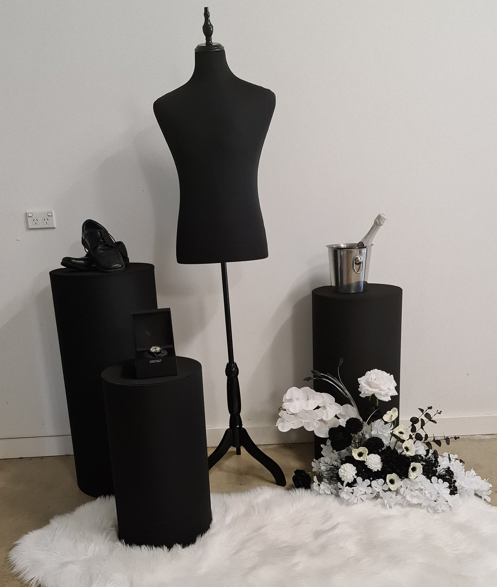 - Black cylinder plinth - 75cm- $30 (CODE: ABH218)