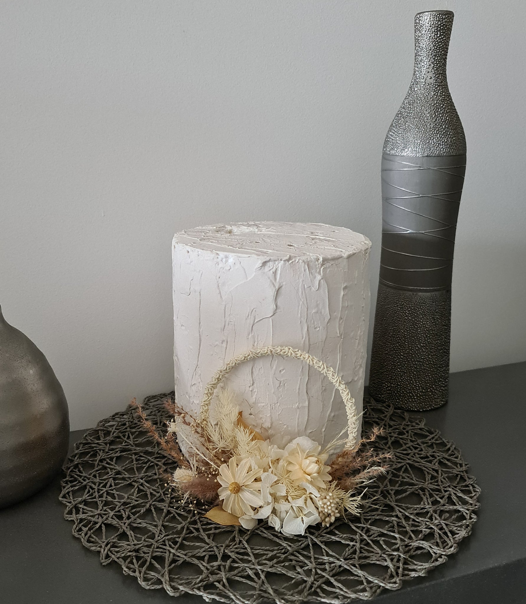 Unique handcrafted 5inch preserved & dry flowers cake hoop with daisy and straw flowers