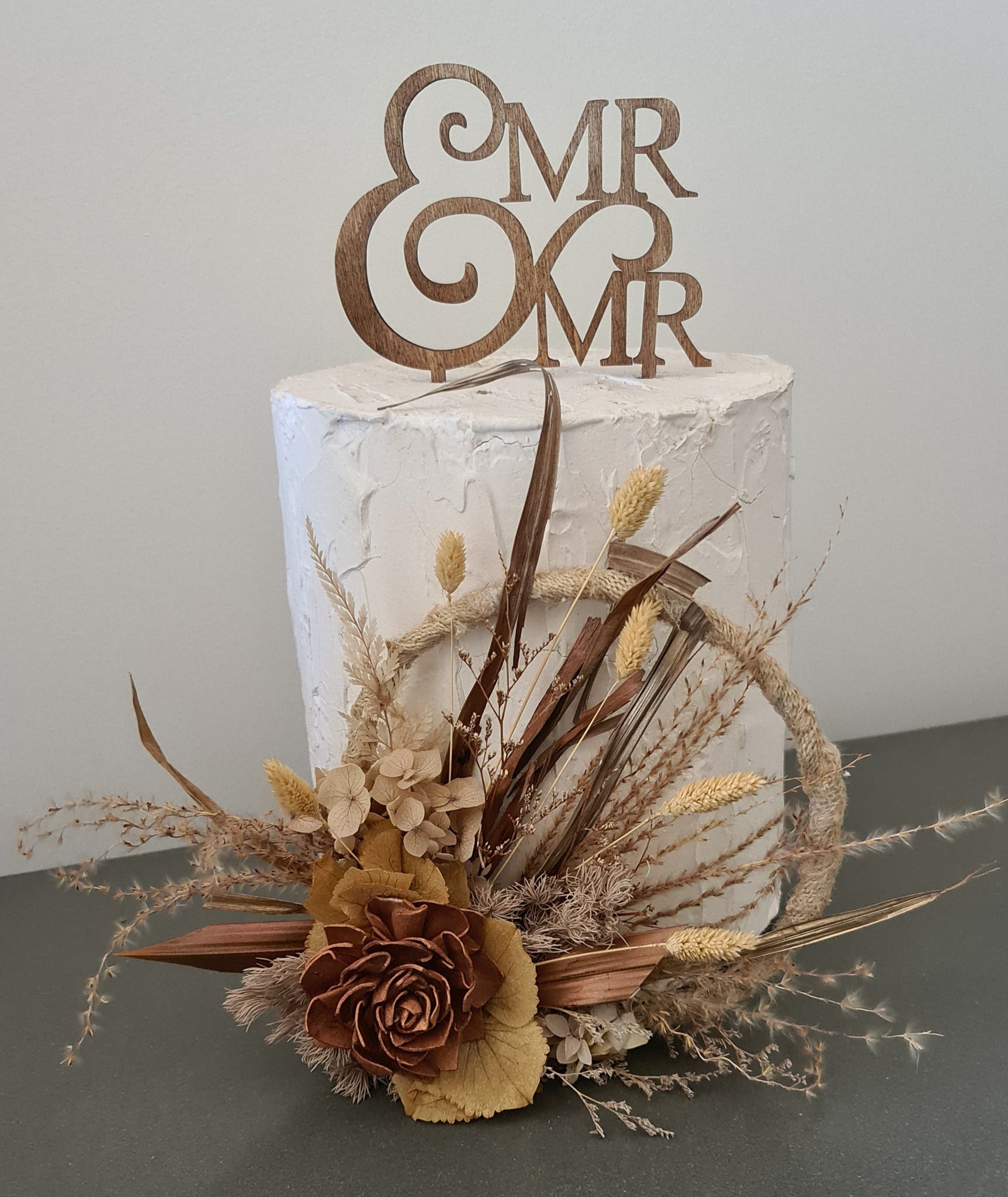 Handcrafted copper mustard preserved flowers hoop / cake topper – 6inch