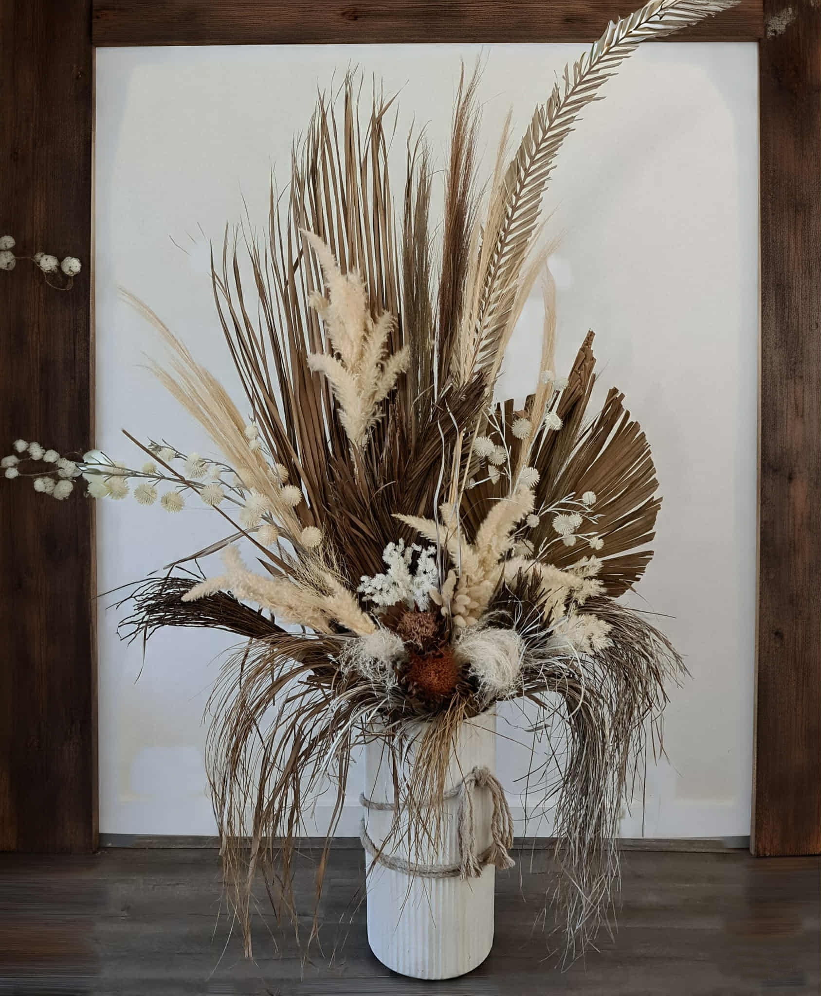 Large Boho Rustic flowers in Ribbed urn