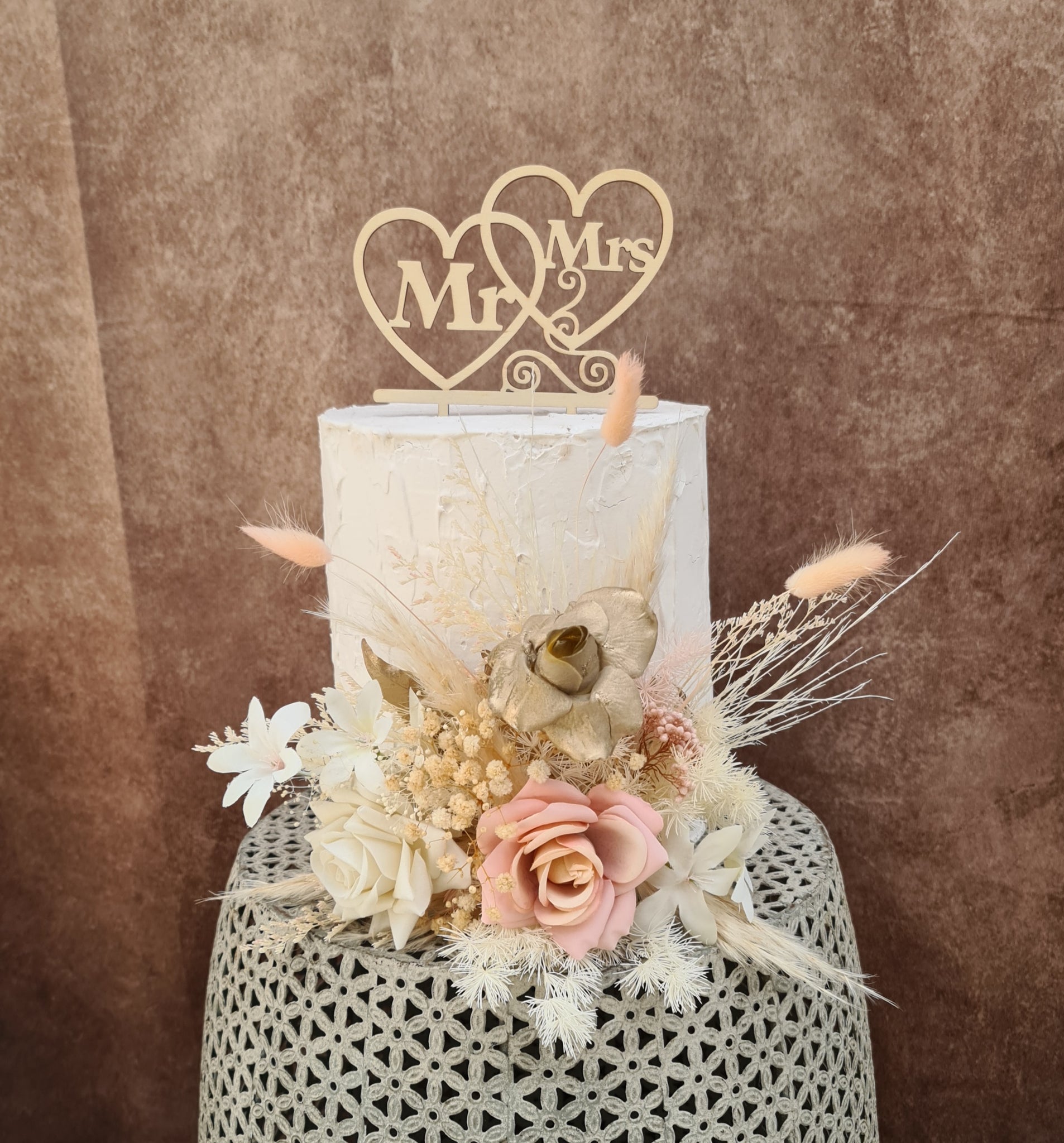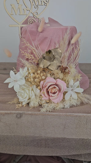 Wedding Floral cake topper: in blush & champagne gold tones.