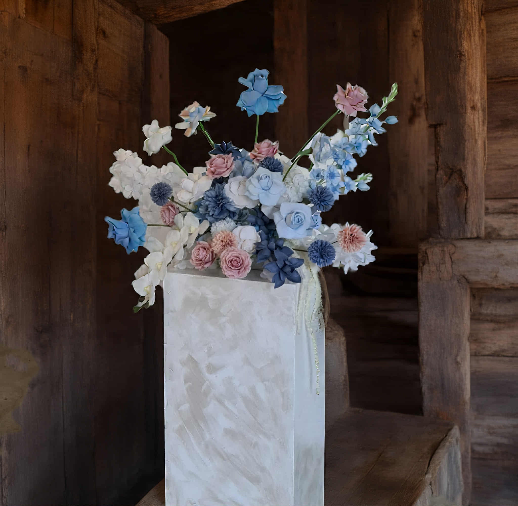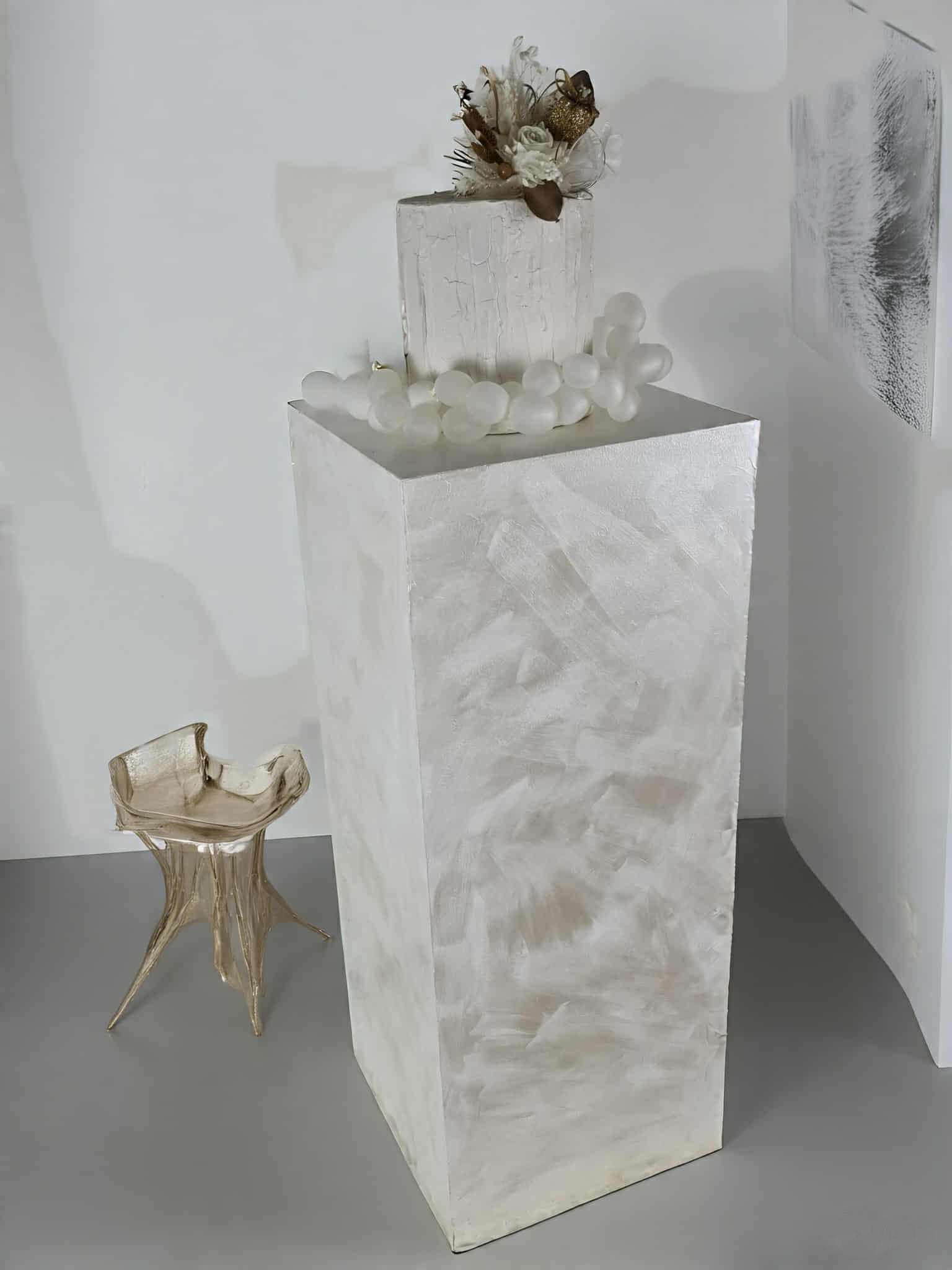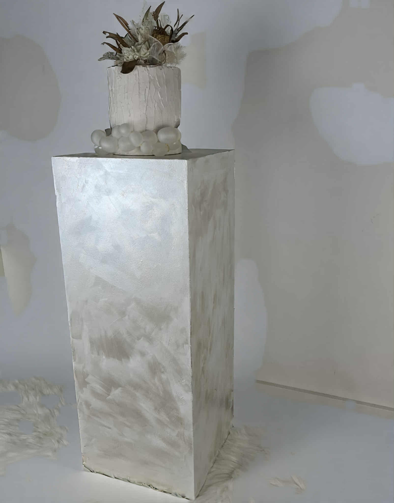 Pearl White textured acrylic plinth cake / flower stand - 90cm tall