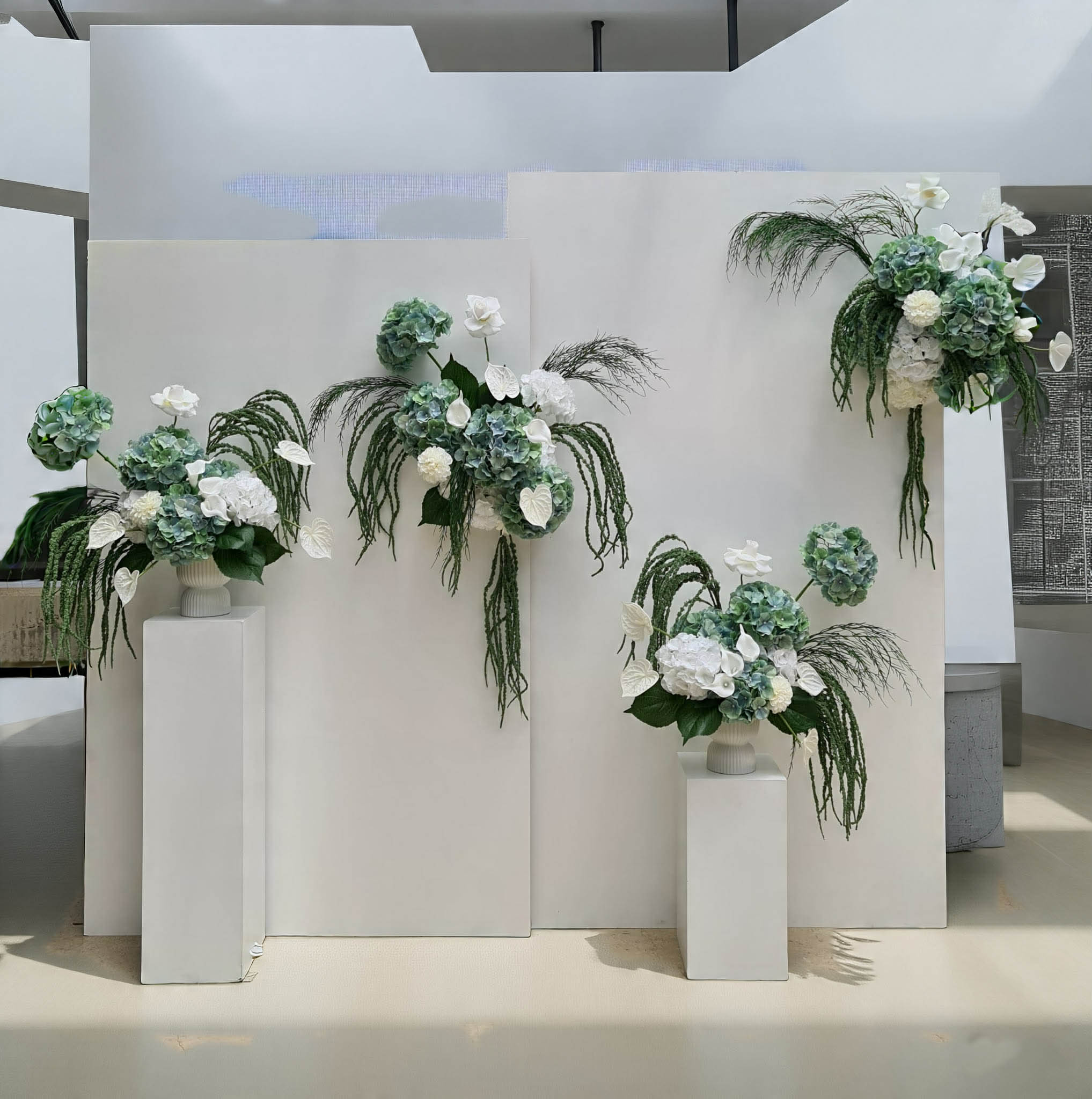 - 2 x ABH509 Popular green & white floor / plinth / table flowers in pots - $120 for 2