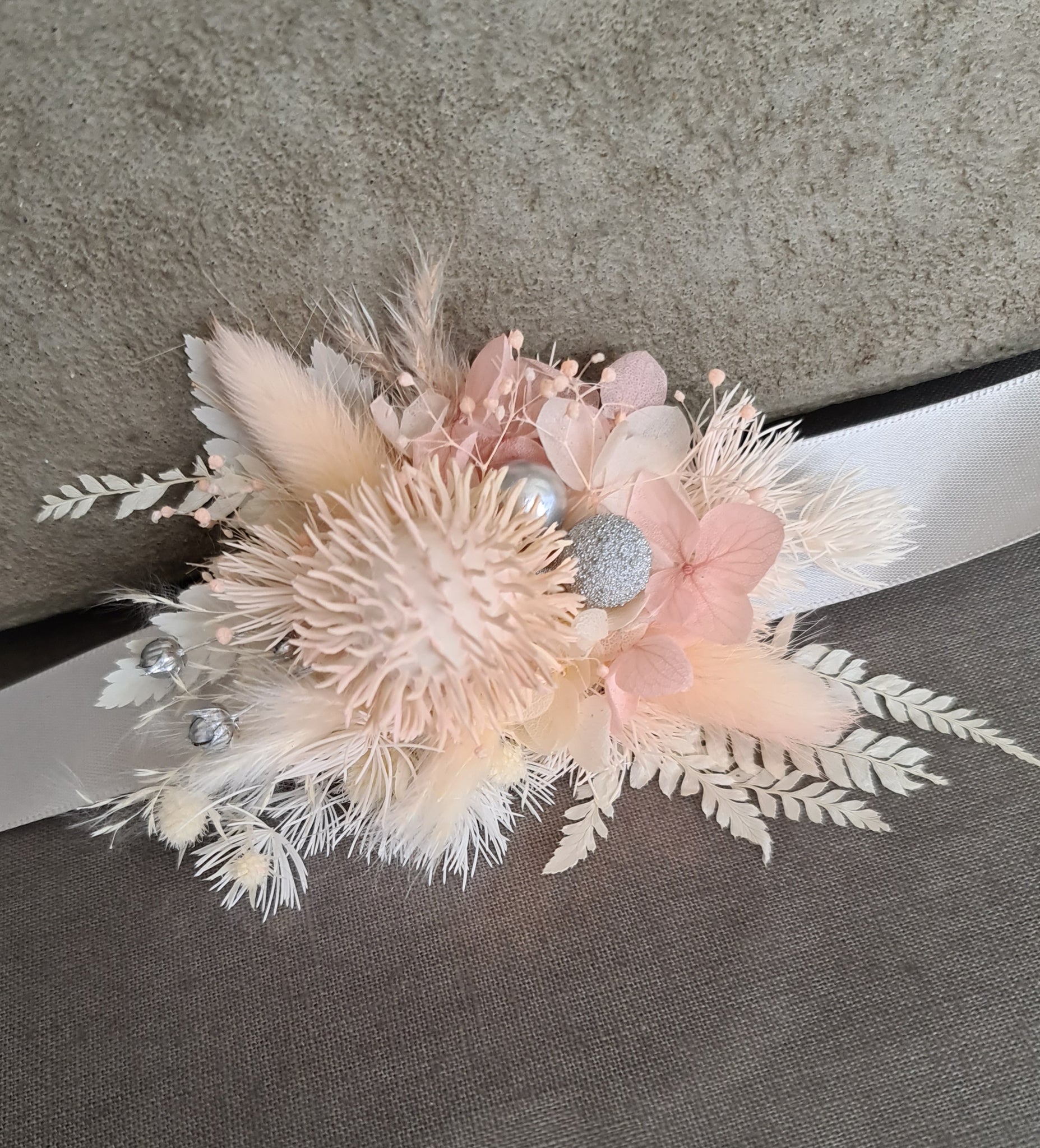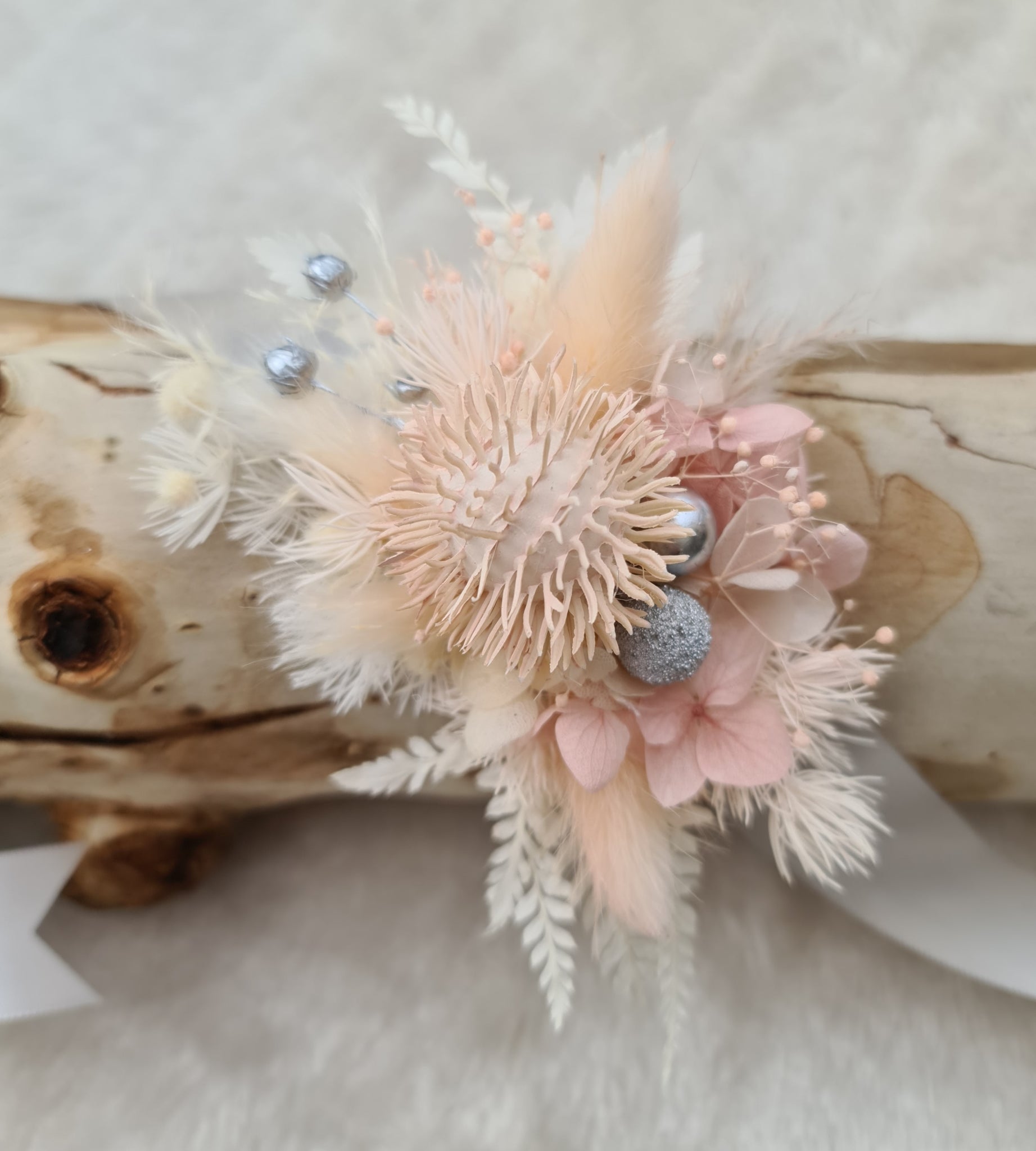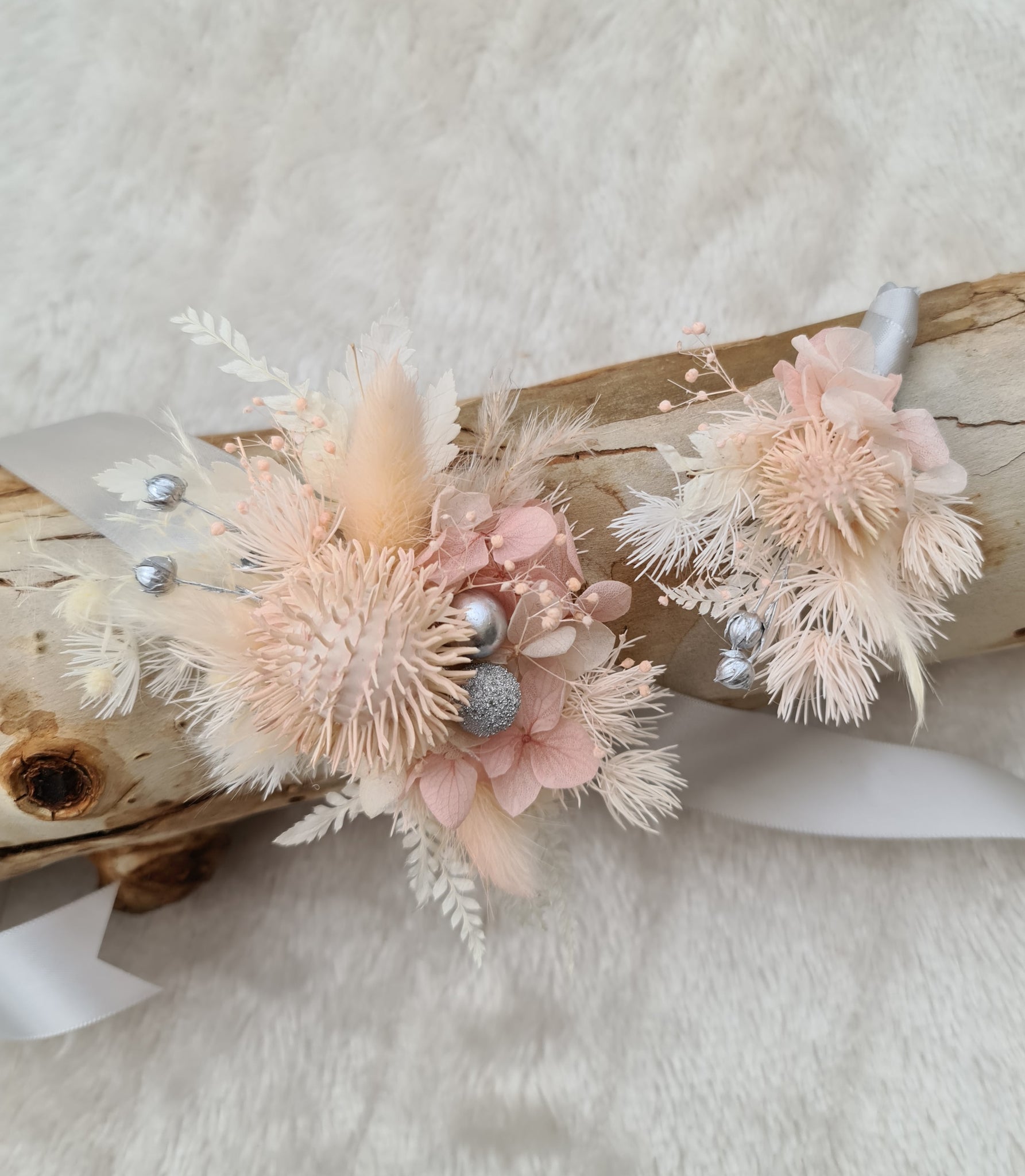 Preserved blush flowers corsage & buttonhole with silver - School formal / wedding