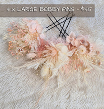 3 x larger bobby pins with preserved flowers in blush tones