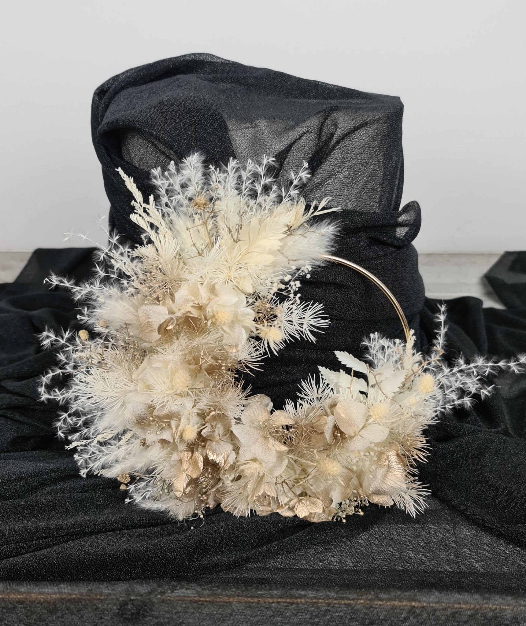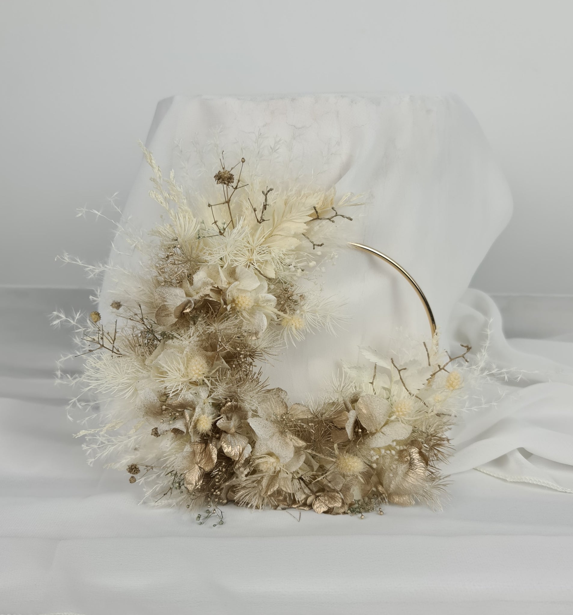 Preserved flowers cake hoop – neutral & champagne gold – 5 inch