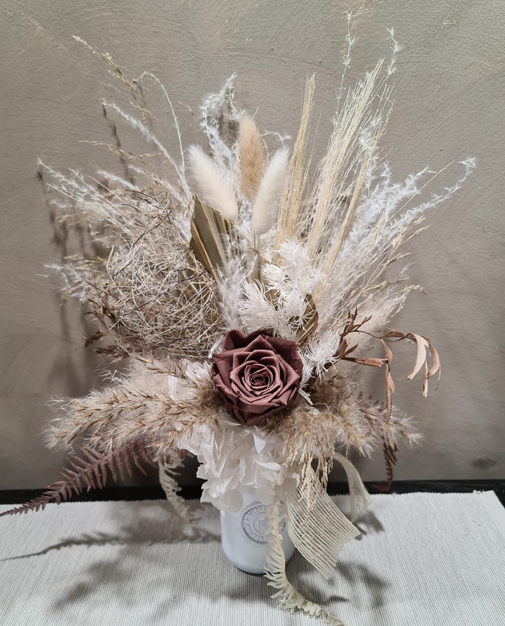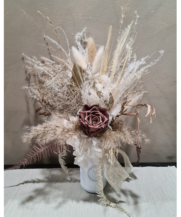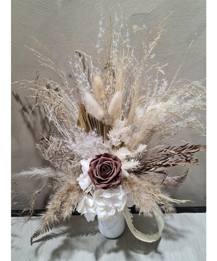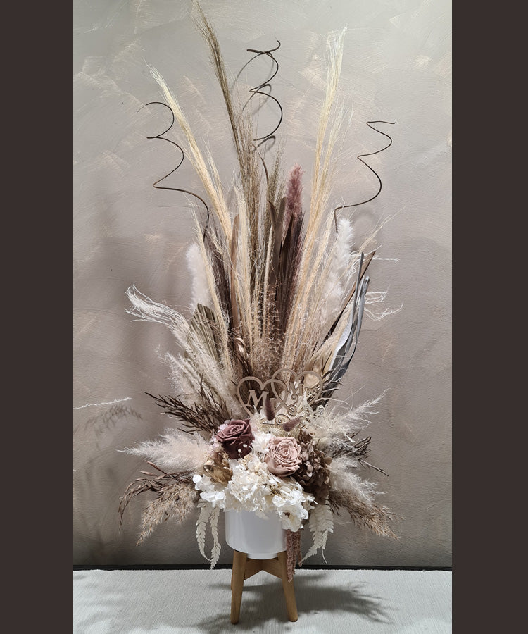 Mr & Mrs preserved roses flower arrangement and table centerpieces