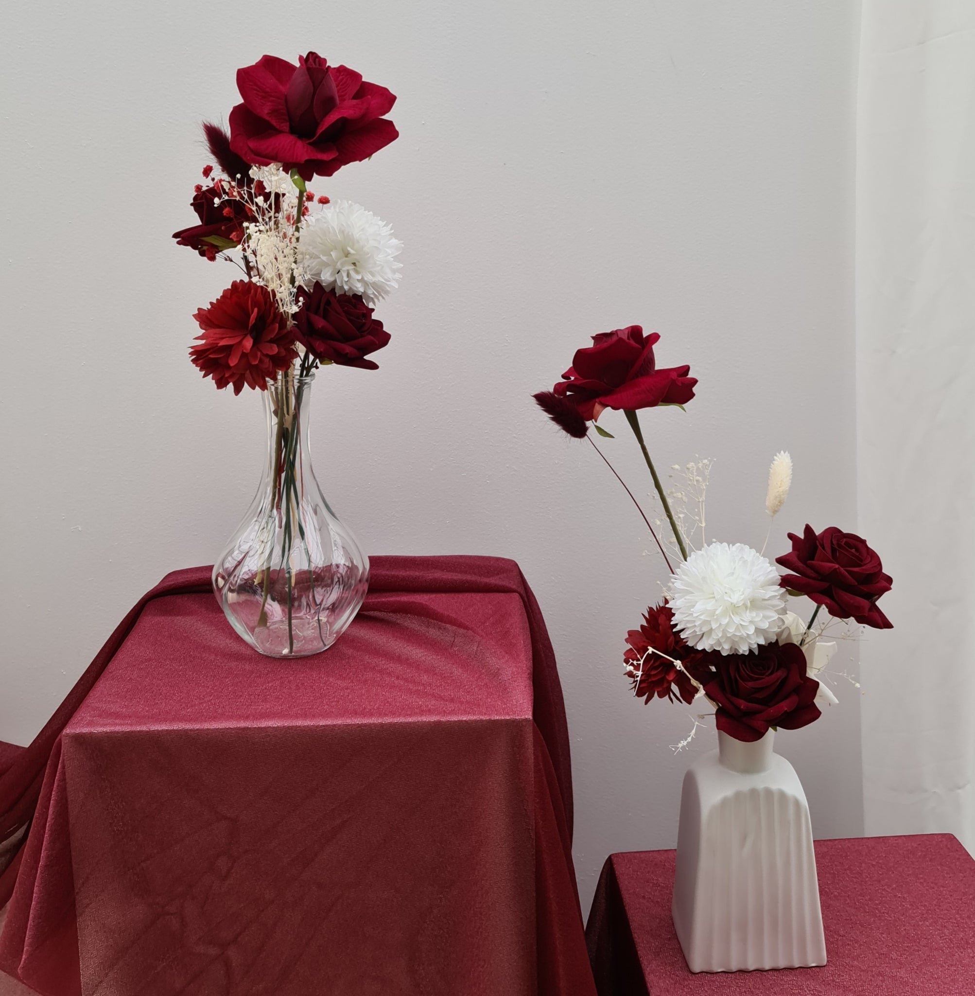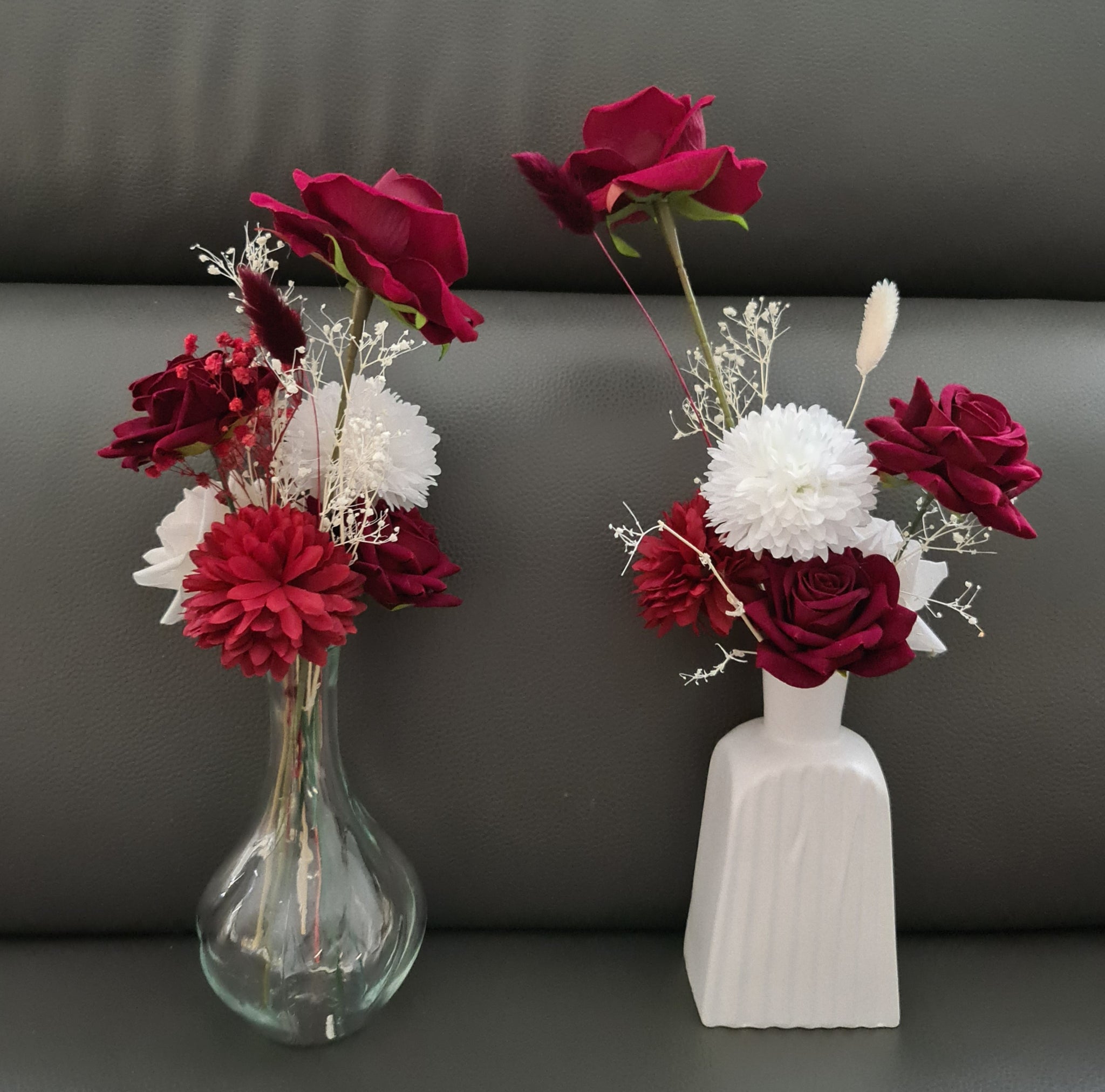 Red & white table flowers centrepieces