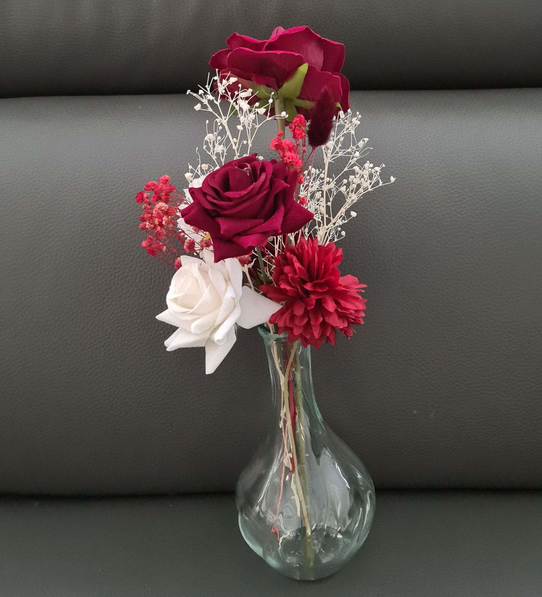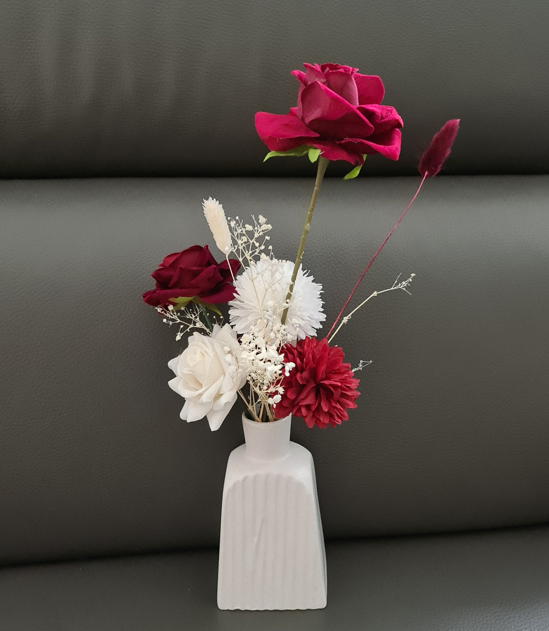 Can be in glass vase or ribbed white vase (client to choose)