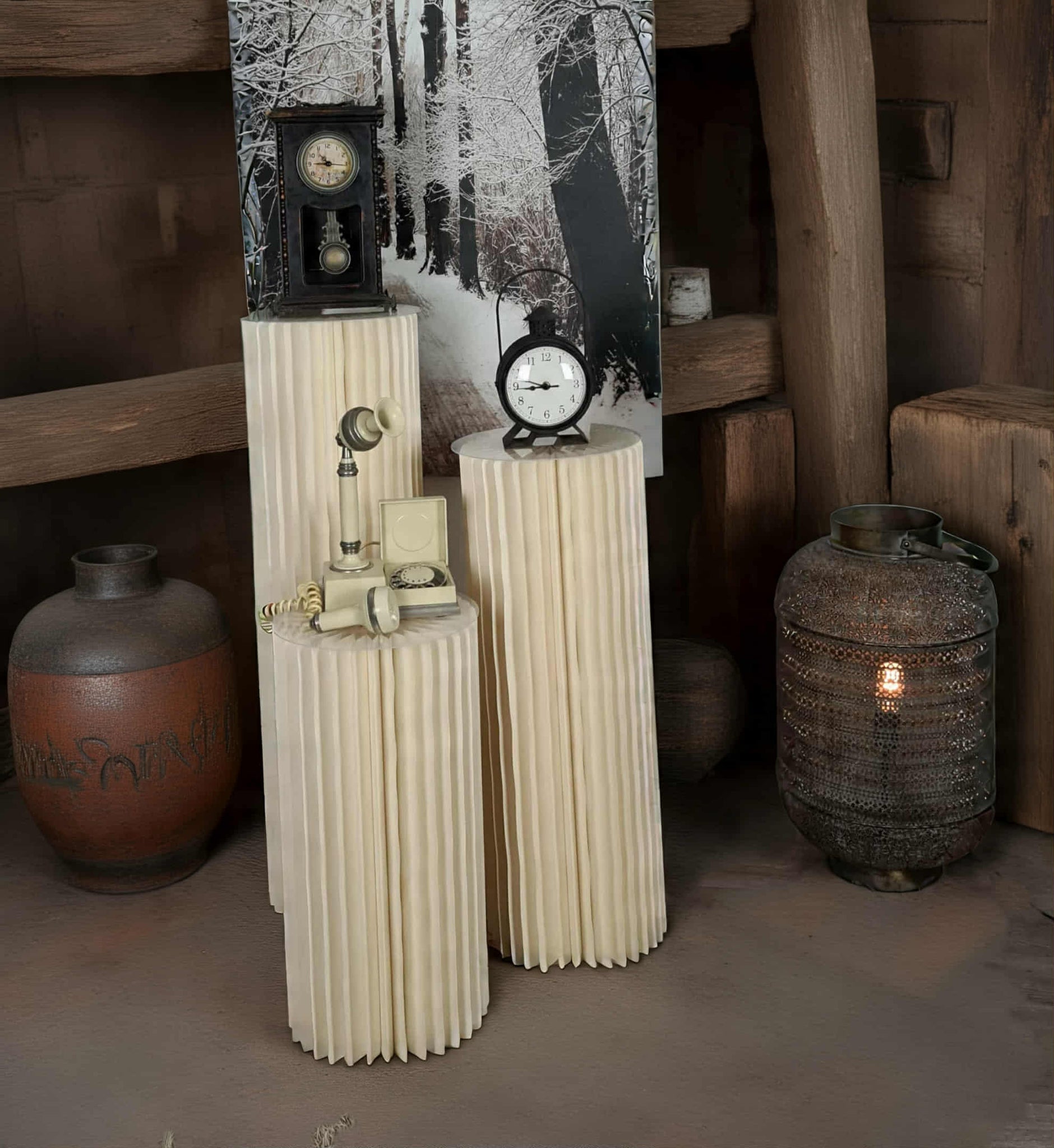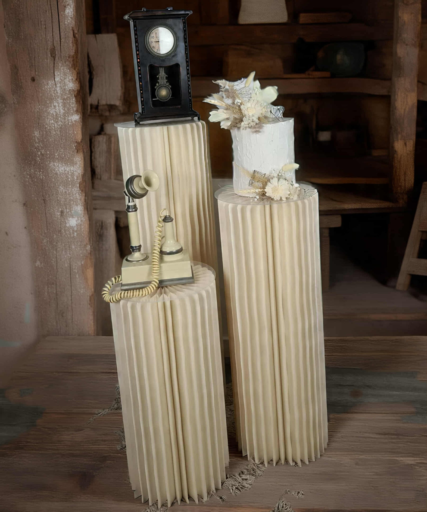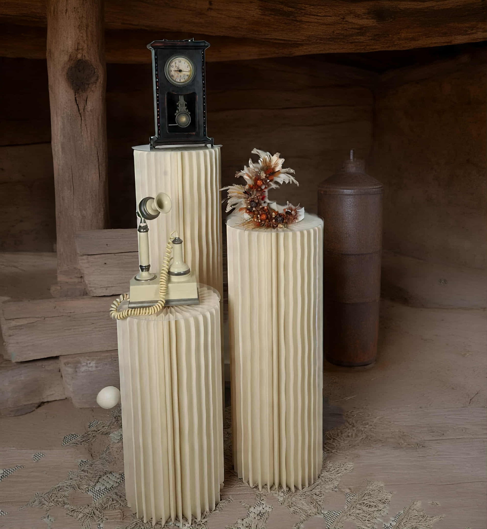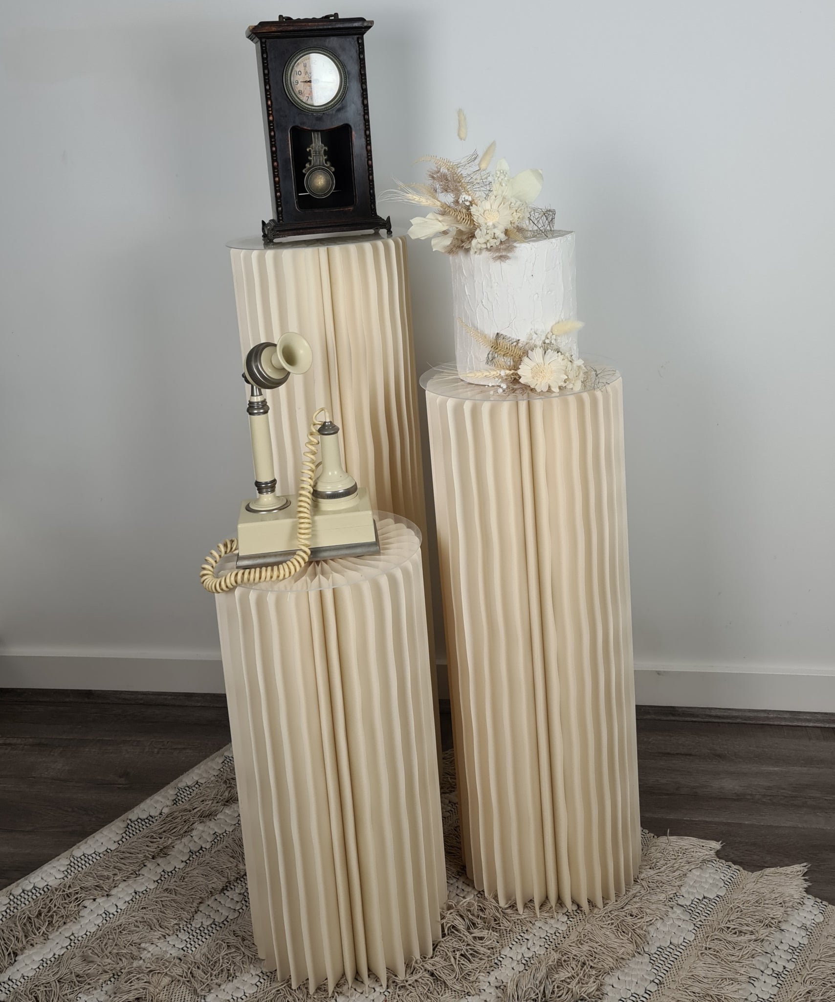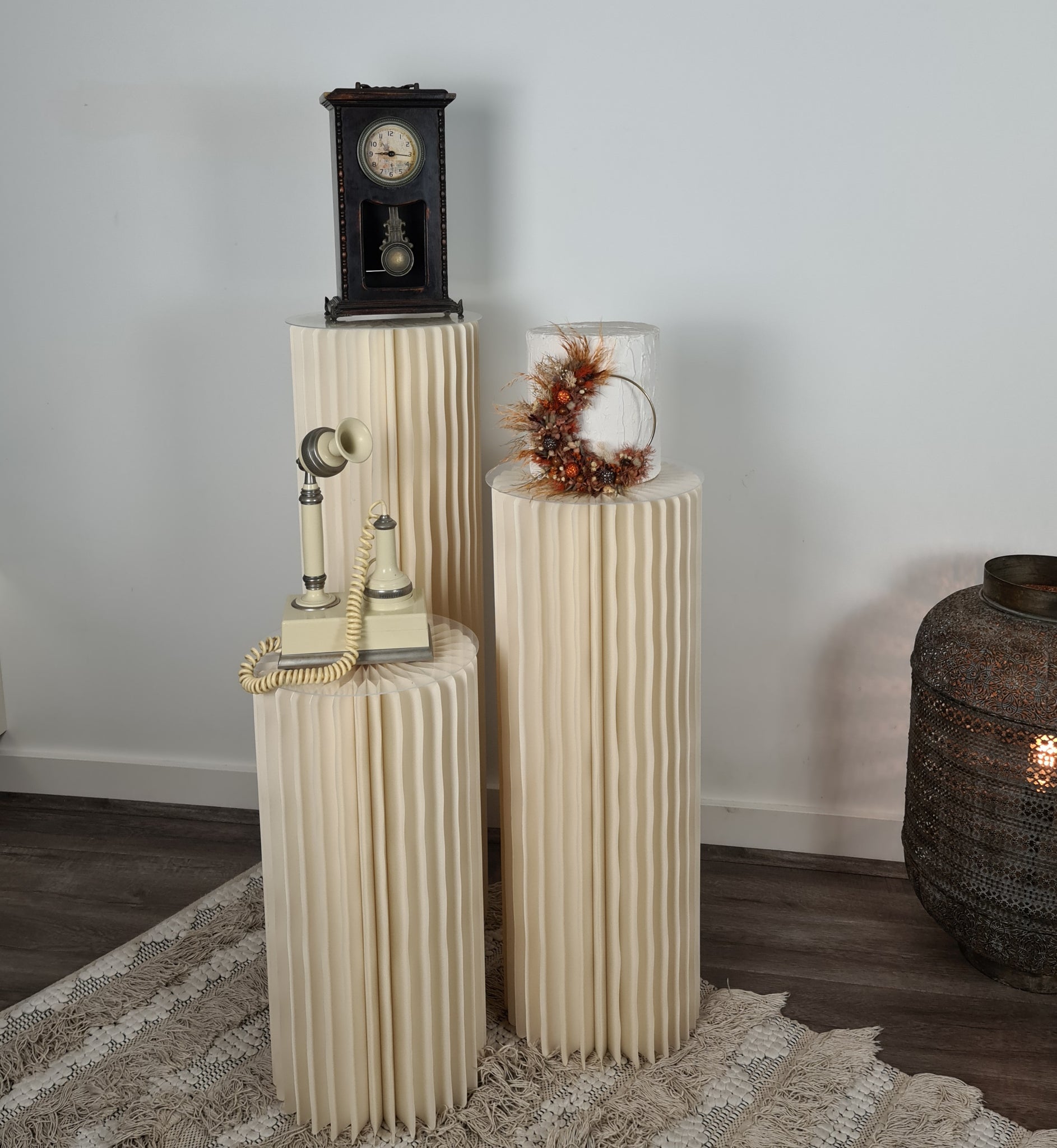 Set of 3 ribbed boho plinths / cake stands