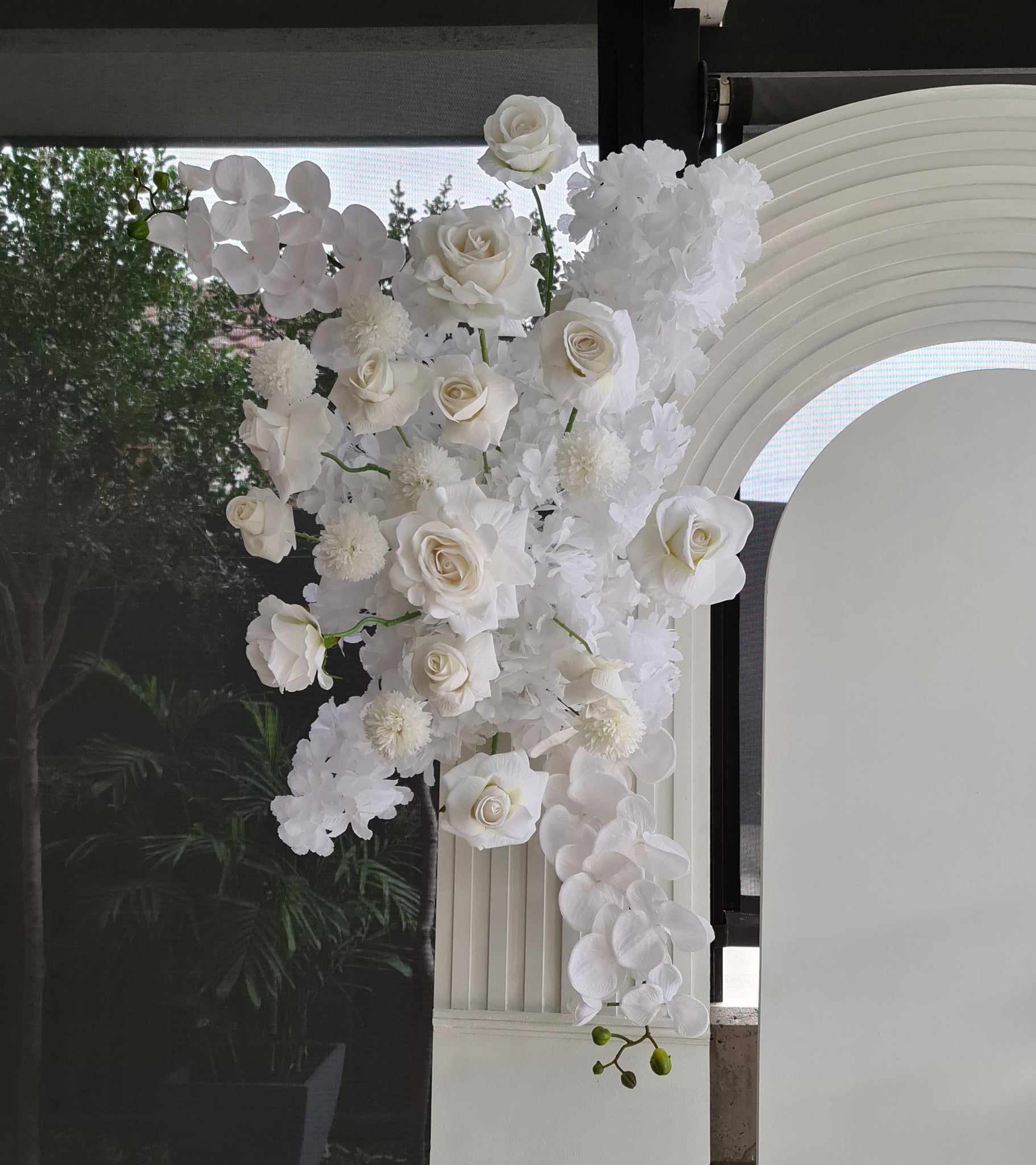 - 2 x White hanging flowers LARGE - backdrop / arbour – (CODE: ABH77) - $90 each