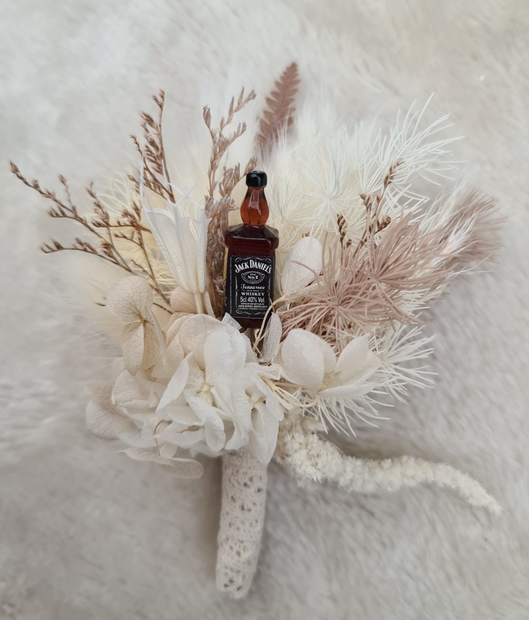 Unique Jack Daniels whiskey Boho preserved flowers buttonhole – Wedding, school formal