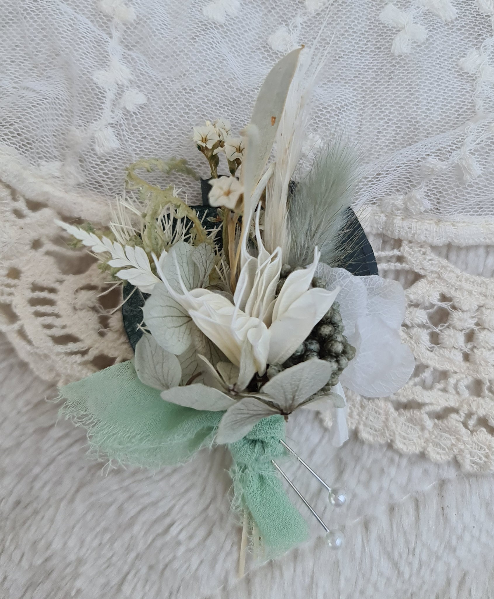 Unique sage green / green preserved everlasting flowers bridal bouquet & buttonhole – Elopement Set