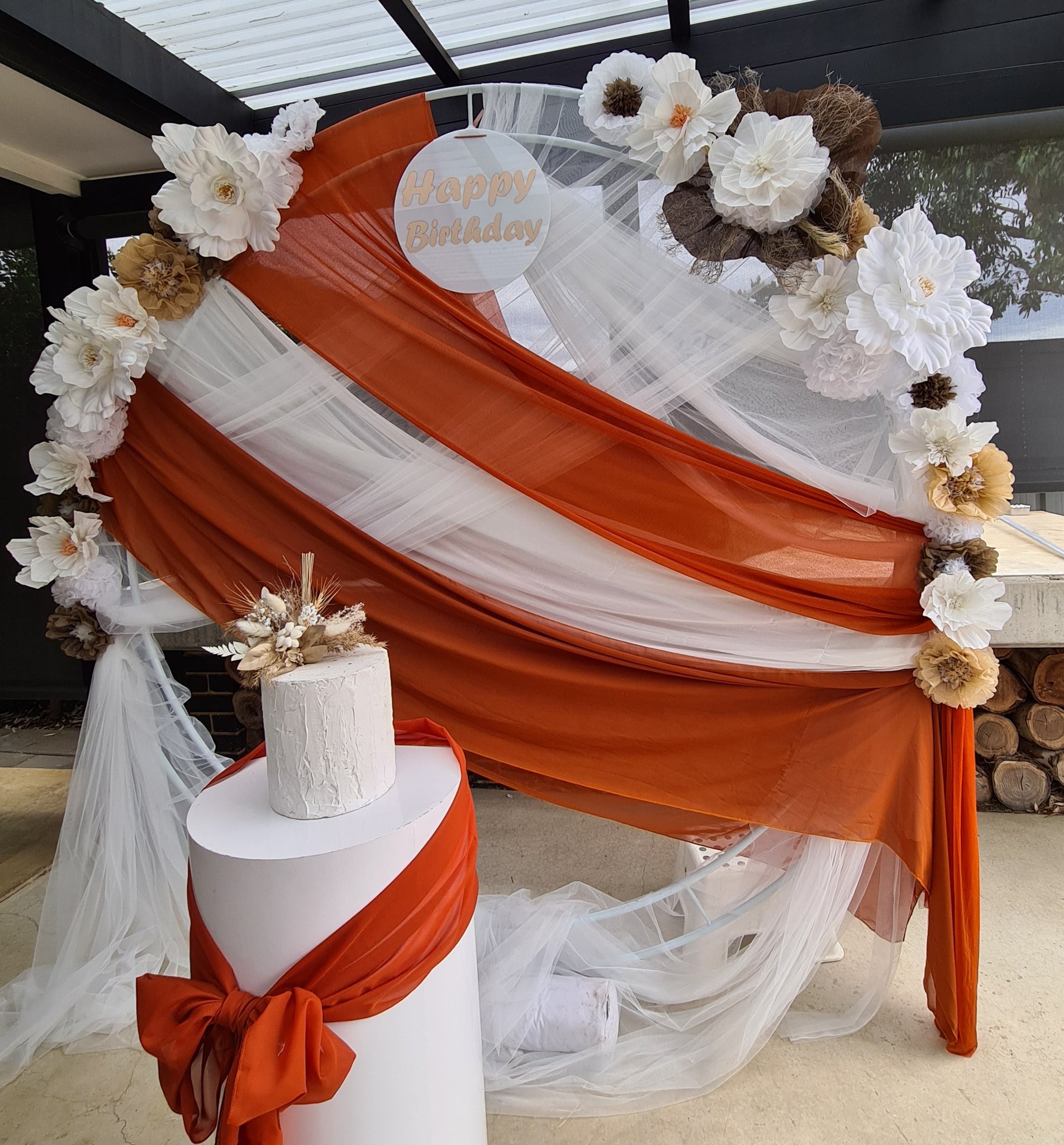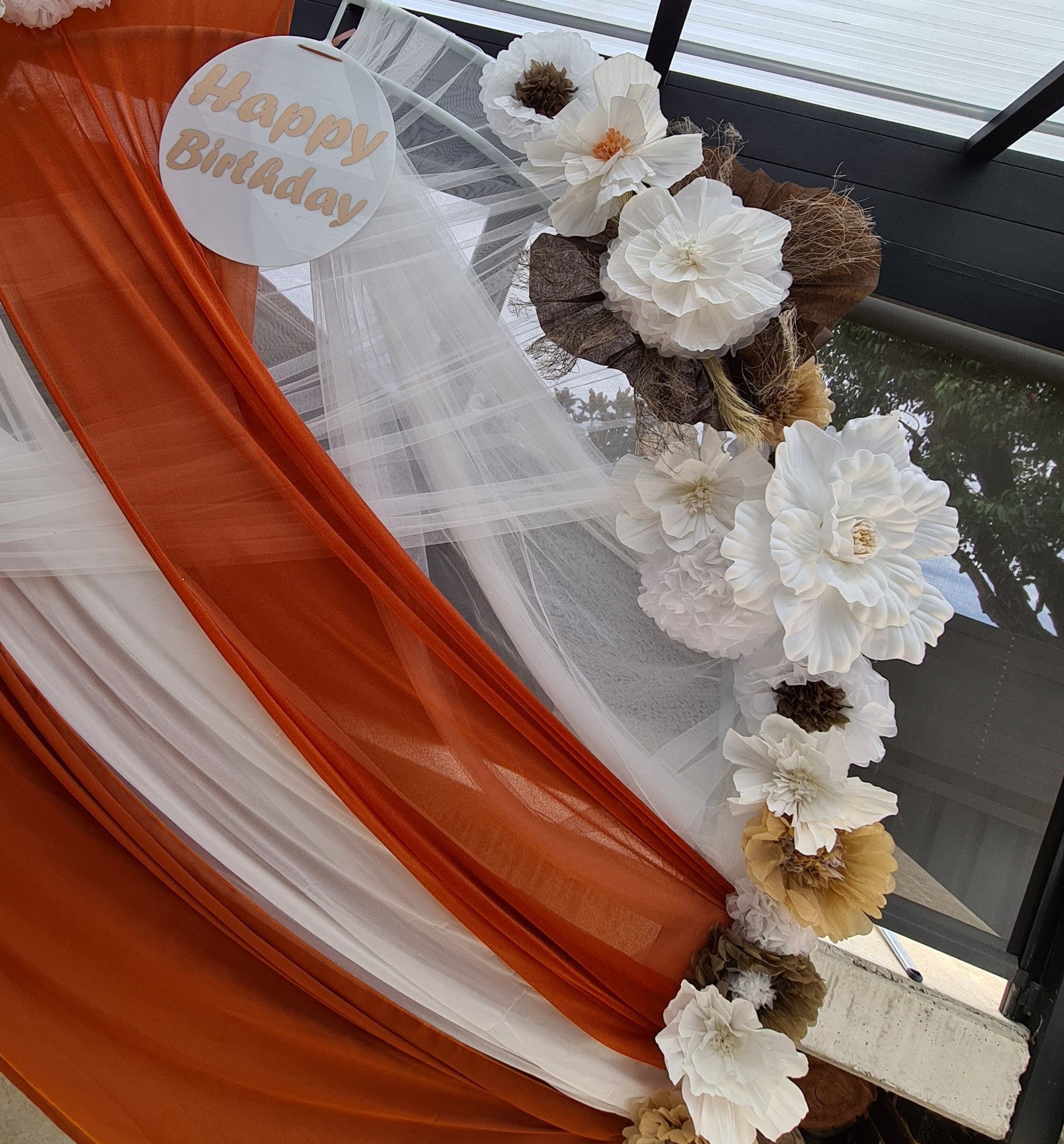 - White & orange drapes / curtains / tulles – 4 pcs free of charge