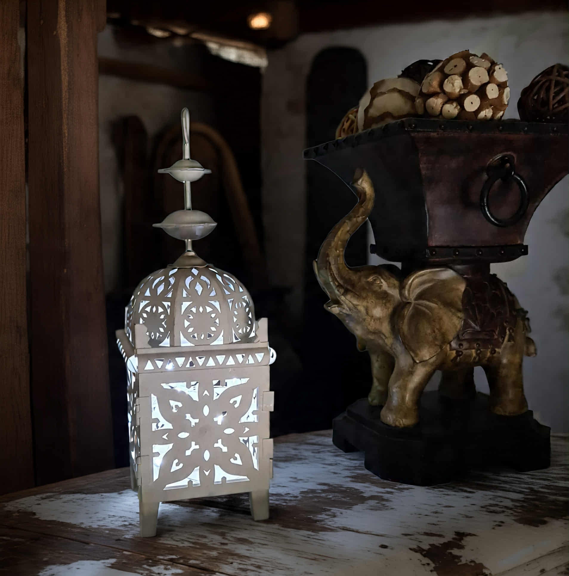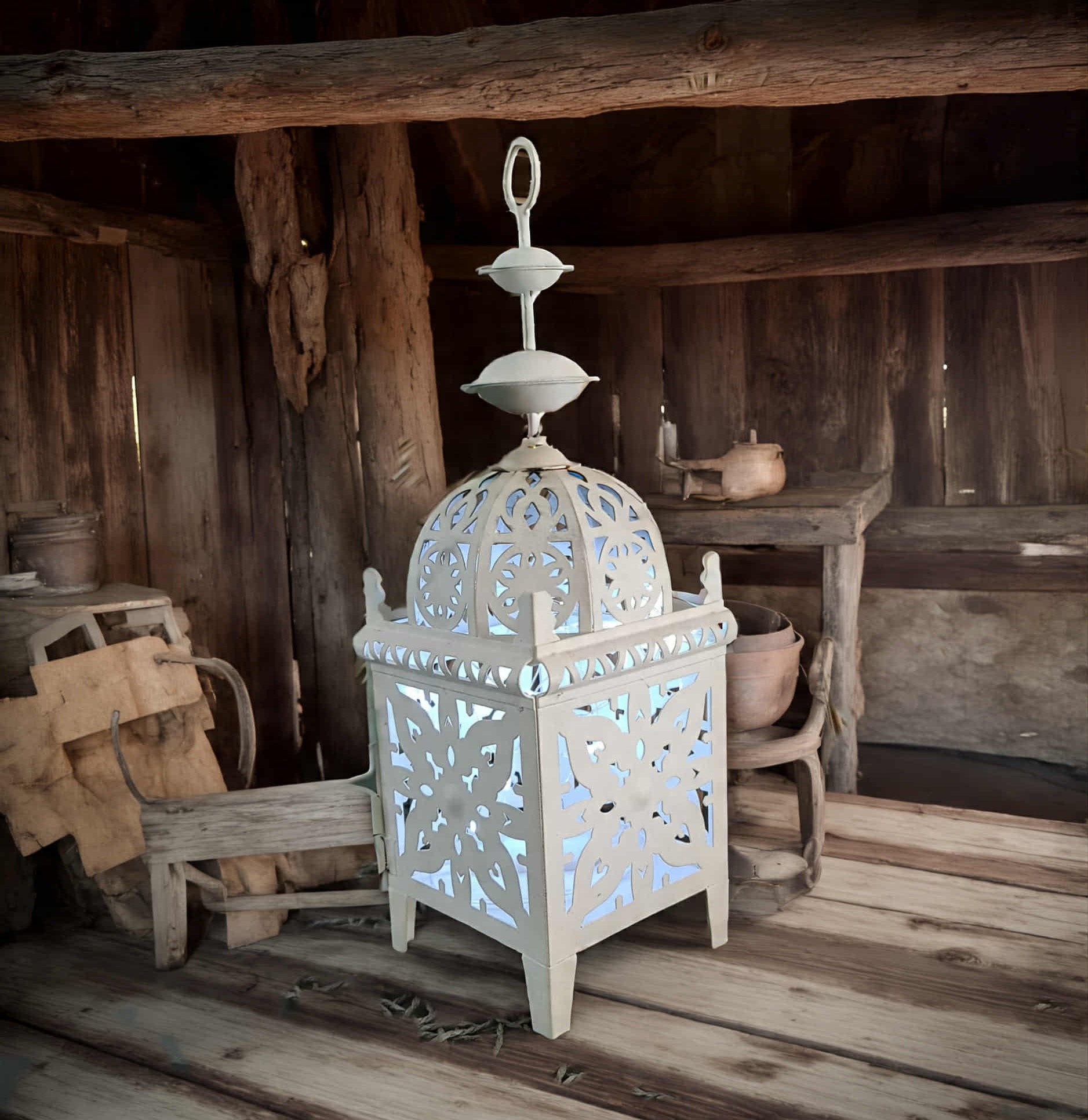 White boho table lantern - SMALL