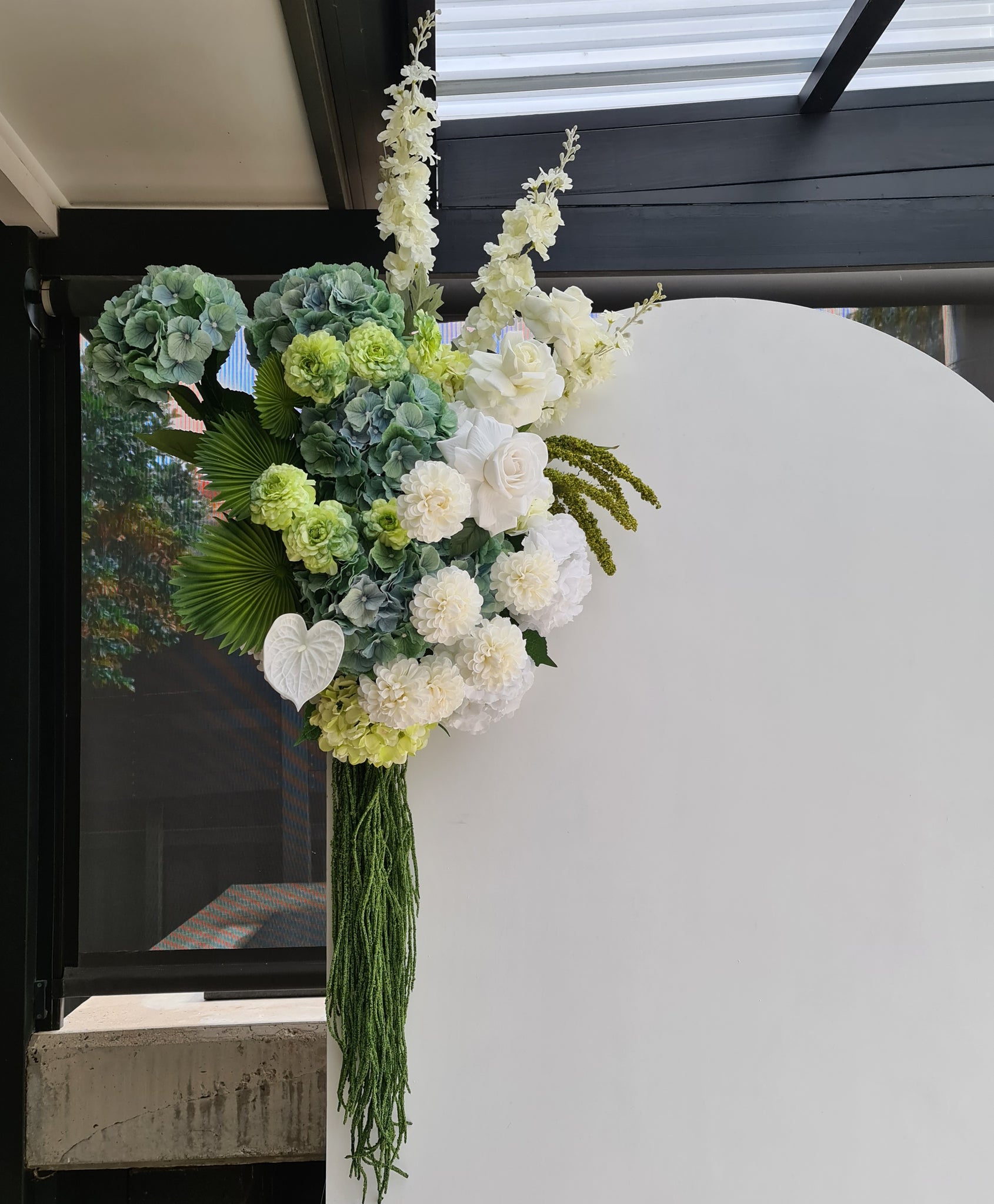 White & green – 2 x backdrops & 2 x flowers – Basic Package