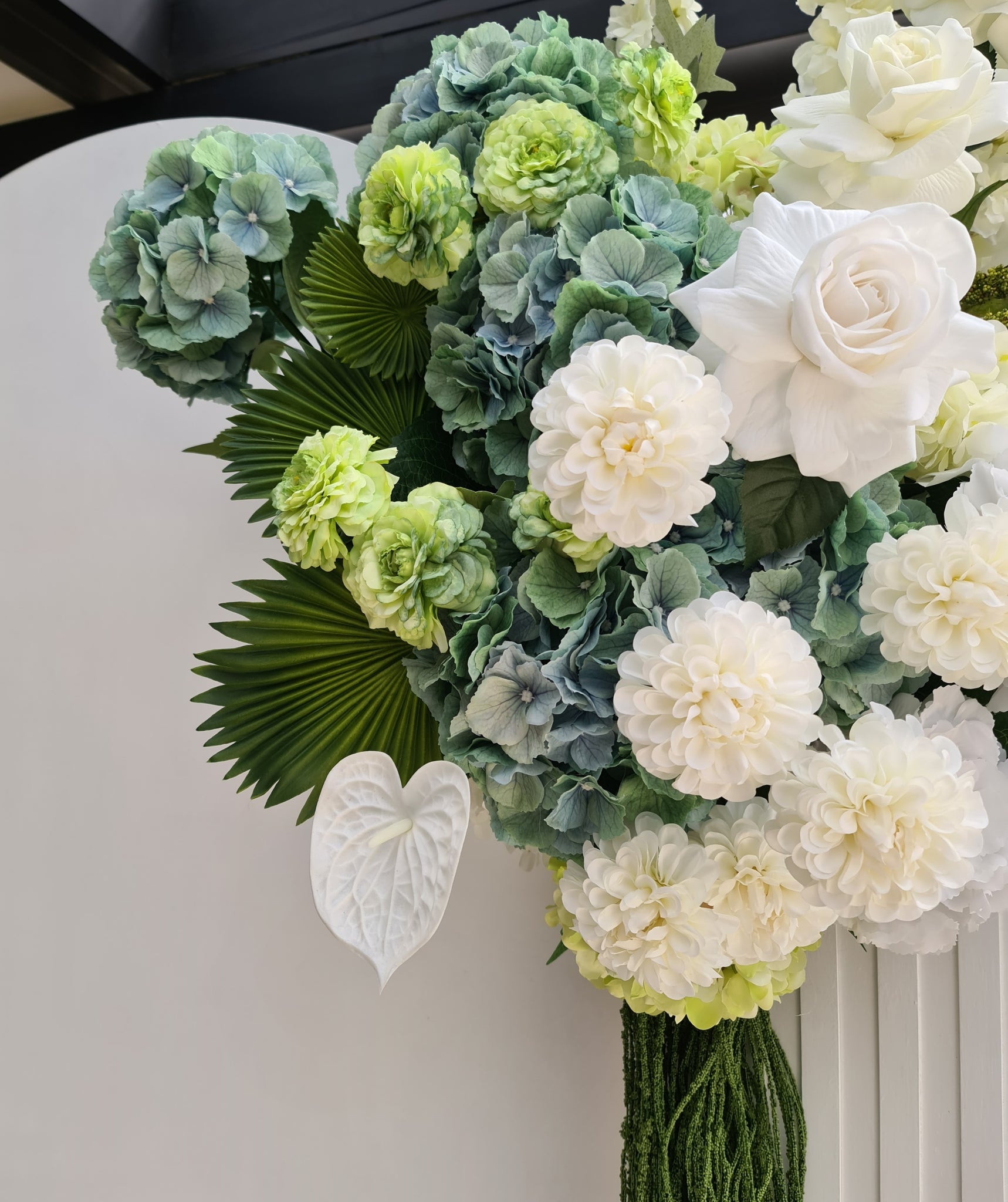 - Green & white large hanging flowers for arch / backdrop / arbour – (ABH383) - $80