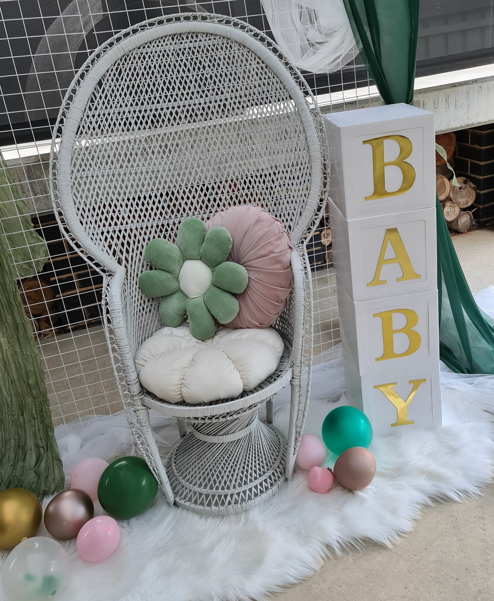 - White peacock chair with cushions – (CODE: ABH97) - $40