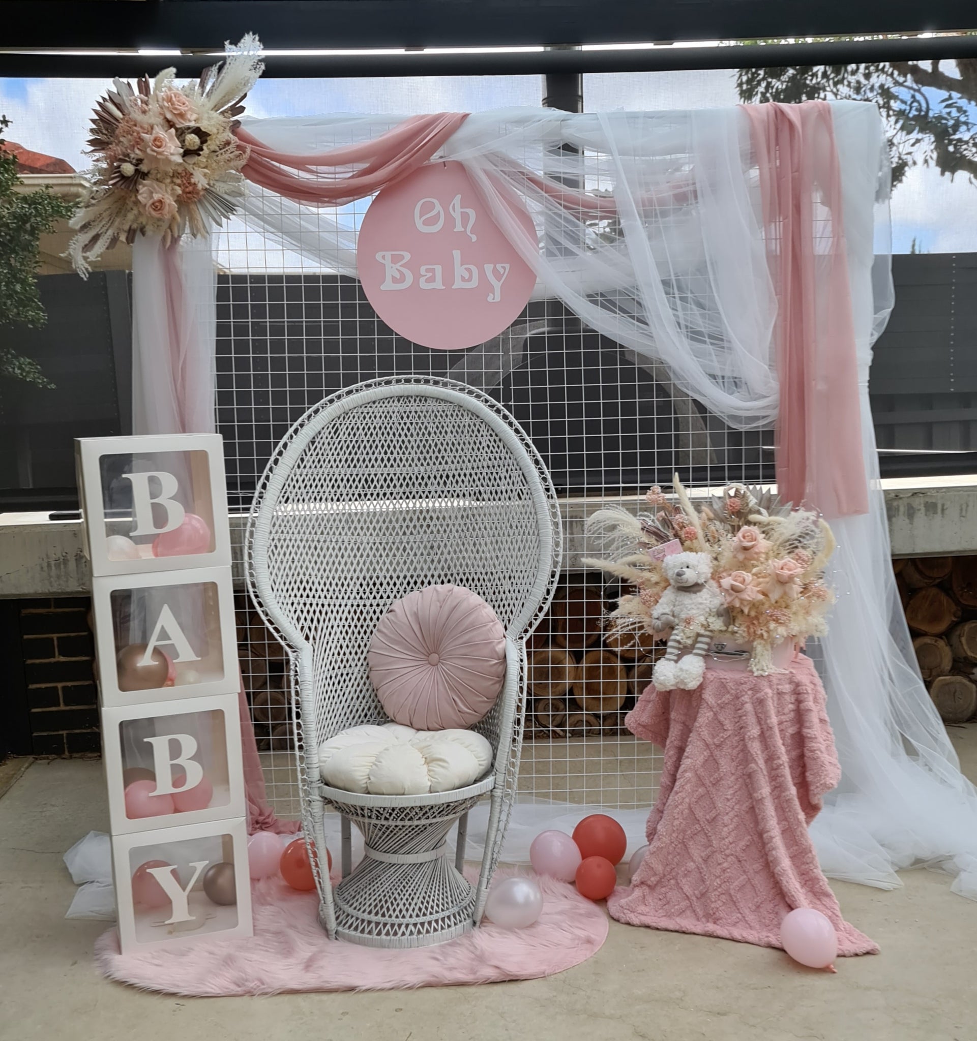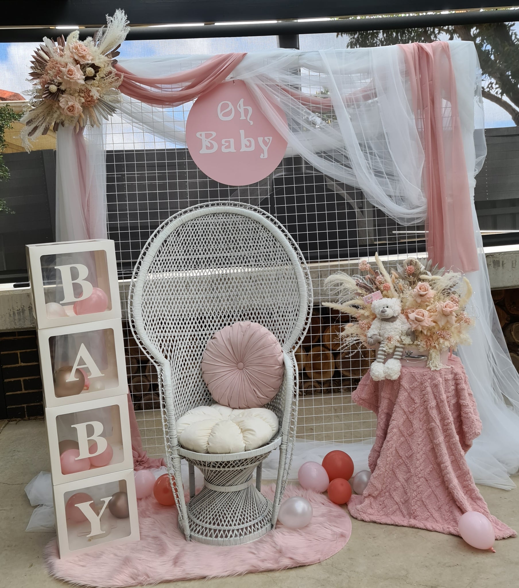 - Everlasting Dusty pastel pink chair / backdrop /easel flowers – (CODE: ABH98) - $50